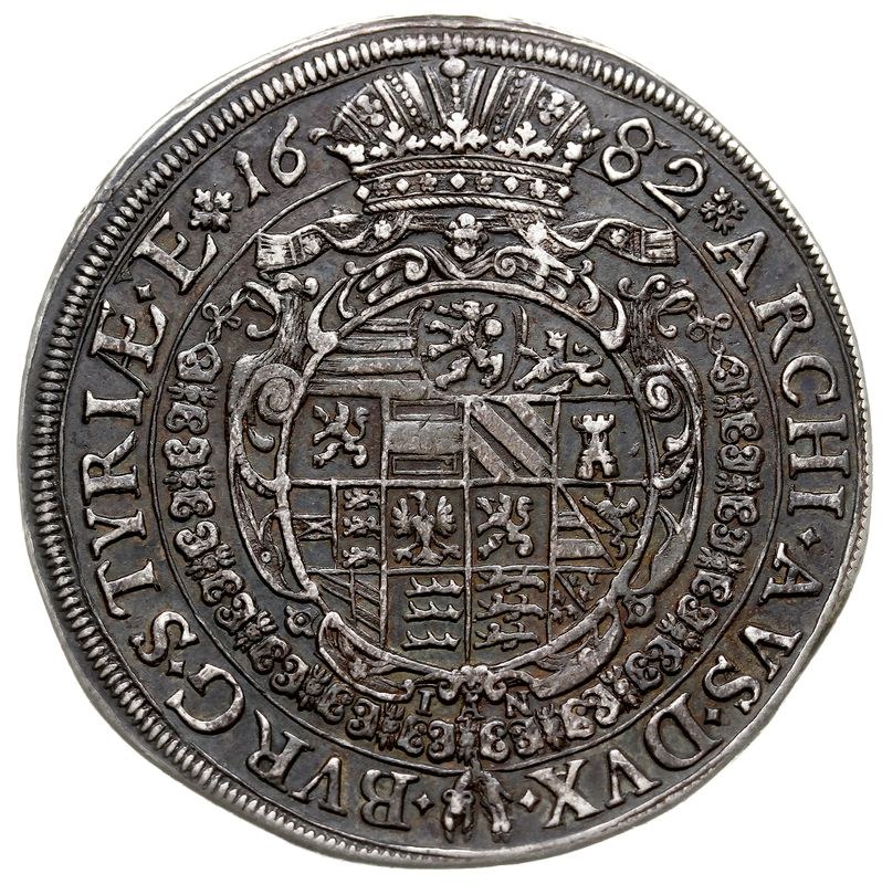 Leopold I 1657-1705, talar 1682 IAN, Graz, srebro 28.16 g, Dav. 3232, Her. 613, Voglh. 220/II, ciemna patyna