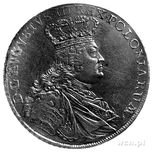 August III 1733 - 1763, talar 1755, Lipsk, bardzo rzadko występujący typ małego popiersia króla w zbroi z upiętym na niej płaszczem, bardzo efektowny styl wykonania, Schnee 1037 typ e3, Dav. 1617, ładna stara patyna.
