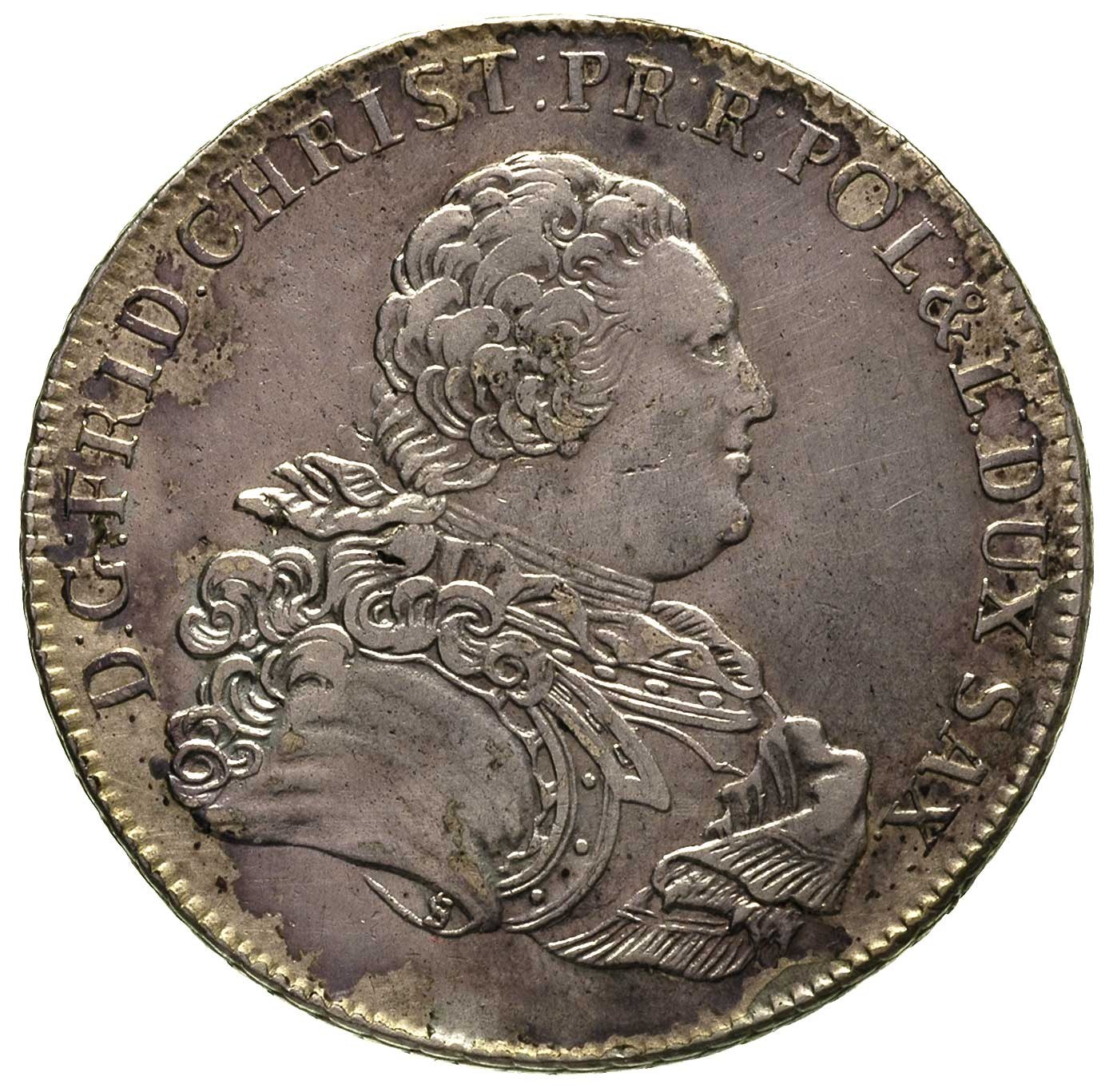 Fryderyk Krystian 1763, talar 1763, Lipsk, litera S pod popiersiem i IFoF pod tarczą herbową, Schnee 1052, Dav. 2677 B