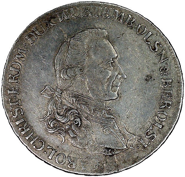 Karol Krystian Erdman 1744-1792, talar 1785, Wrocław, odmiana z literą K pod popiersiem księcia, F.u.S. 2474, Dav. 2879