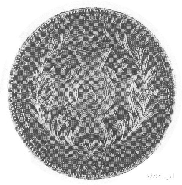 talar 1827, Monachium, Aw: Głowa, w otoku napisy, Rw: O...