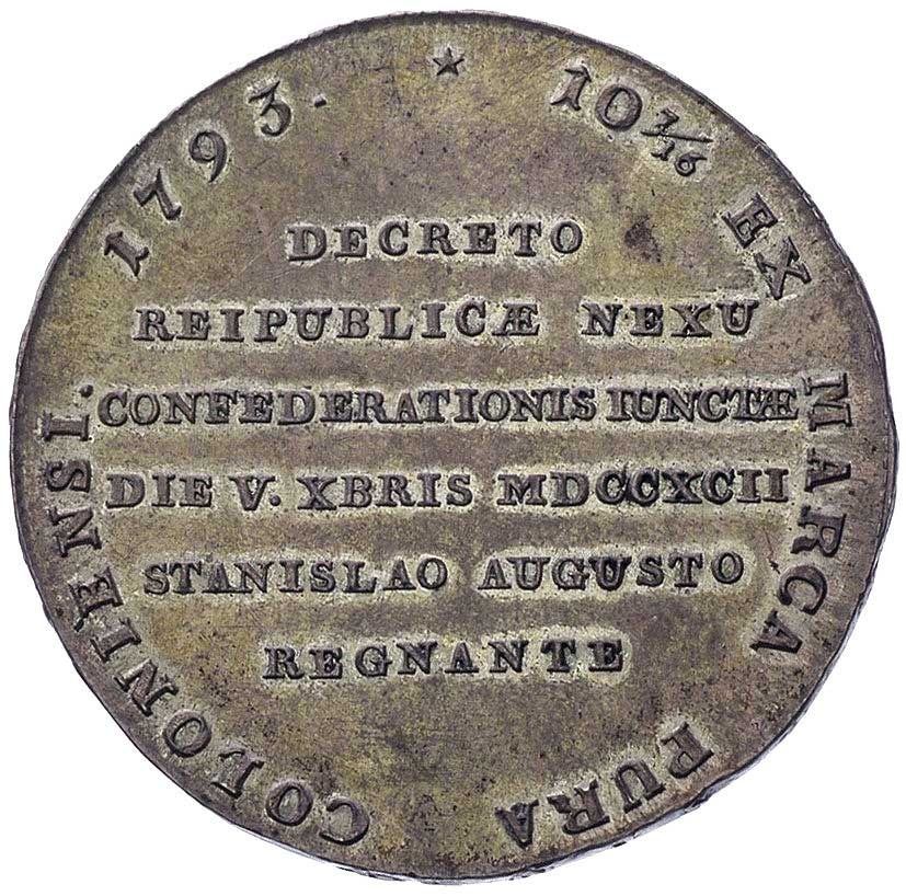 Stanisław August Poniatowski 1764-1795, talar historyczny Konfederacji Targowickiej 1793, Warszawa, Plage 410, Dav. 1622, ładny egzemplarz ze starą patyną