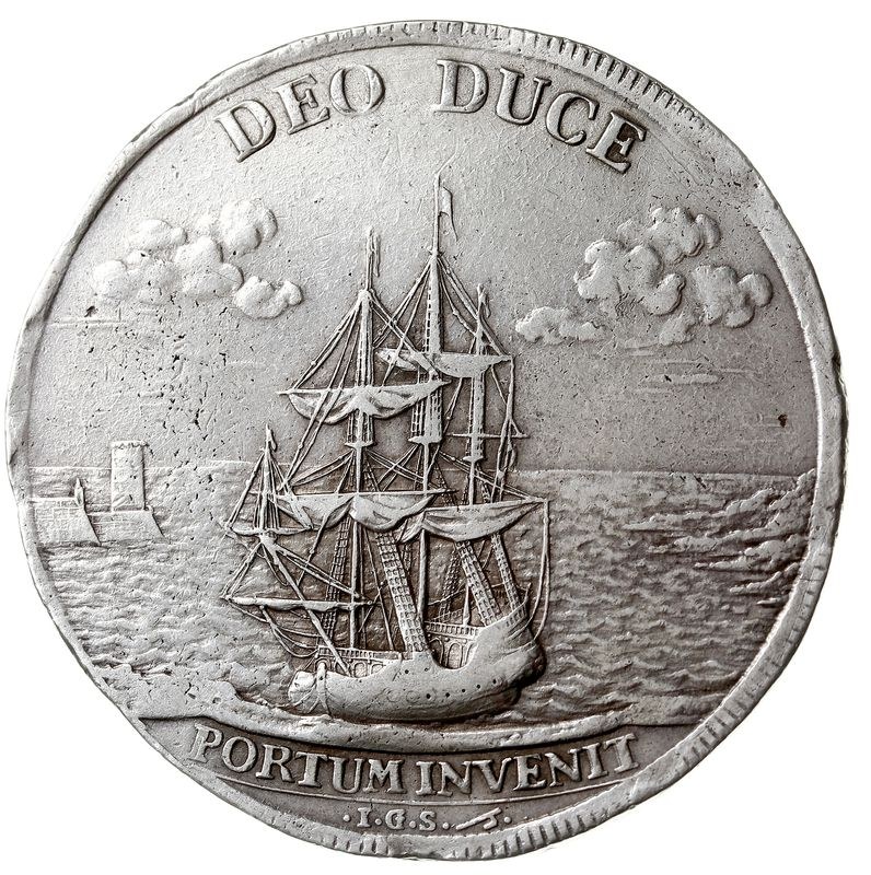 August II 1697-1733, talar pamiątkowy 1717, Drezno, Aw: Napis w 14 wierszach, Rw: Statek wypływający z portu, srebro 28.97 g, Kahnt 298, Schnee 1017, moneta wybita z okazji śmierci matki króla - Anny Zofii