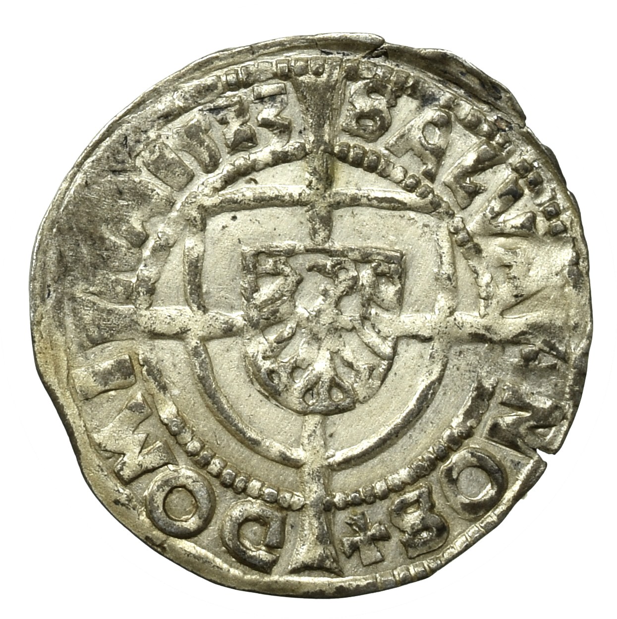 Dużej rzadkości moneta ostatniego Wielkiego Mistrza Zakonu Krzyżackiego.