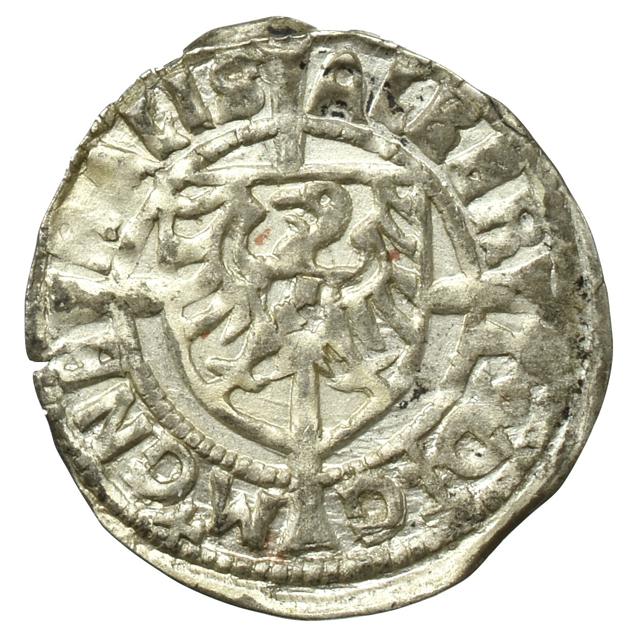 Awers: orzeł w tarczy na długim krzyżu, w otoku legenda ALBERT9 DǂG M+ GNERALIS
