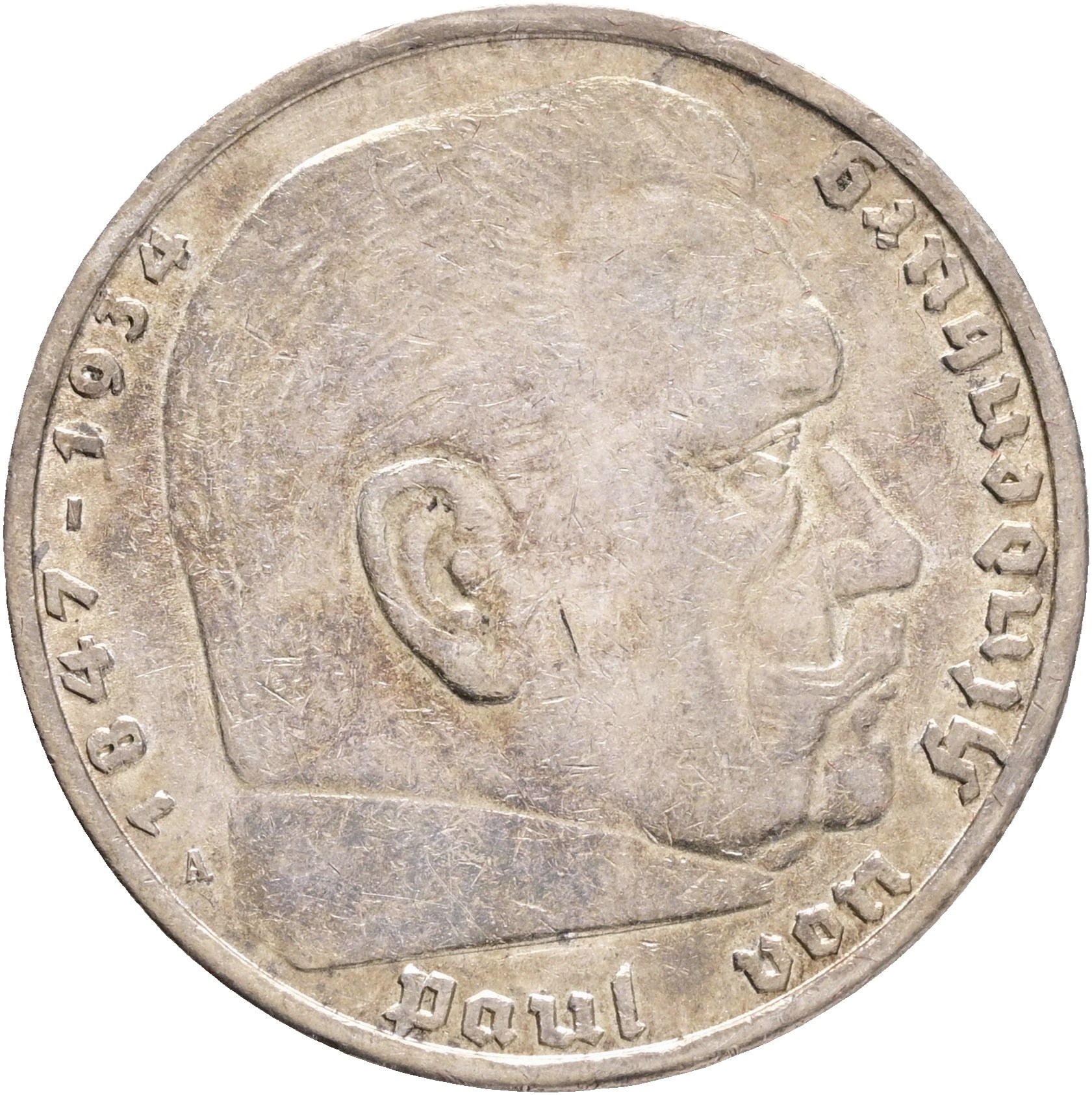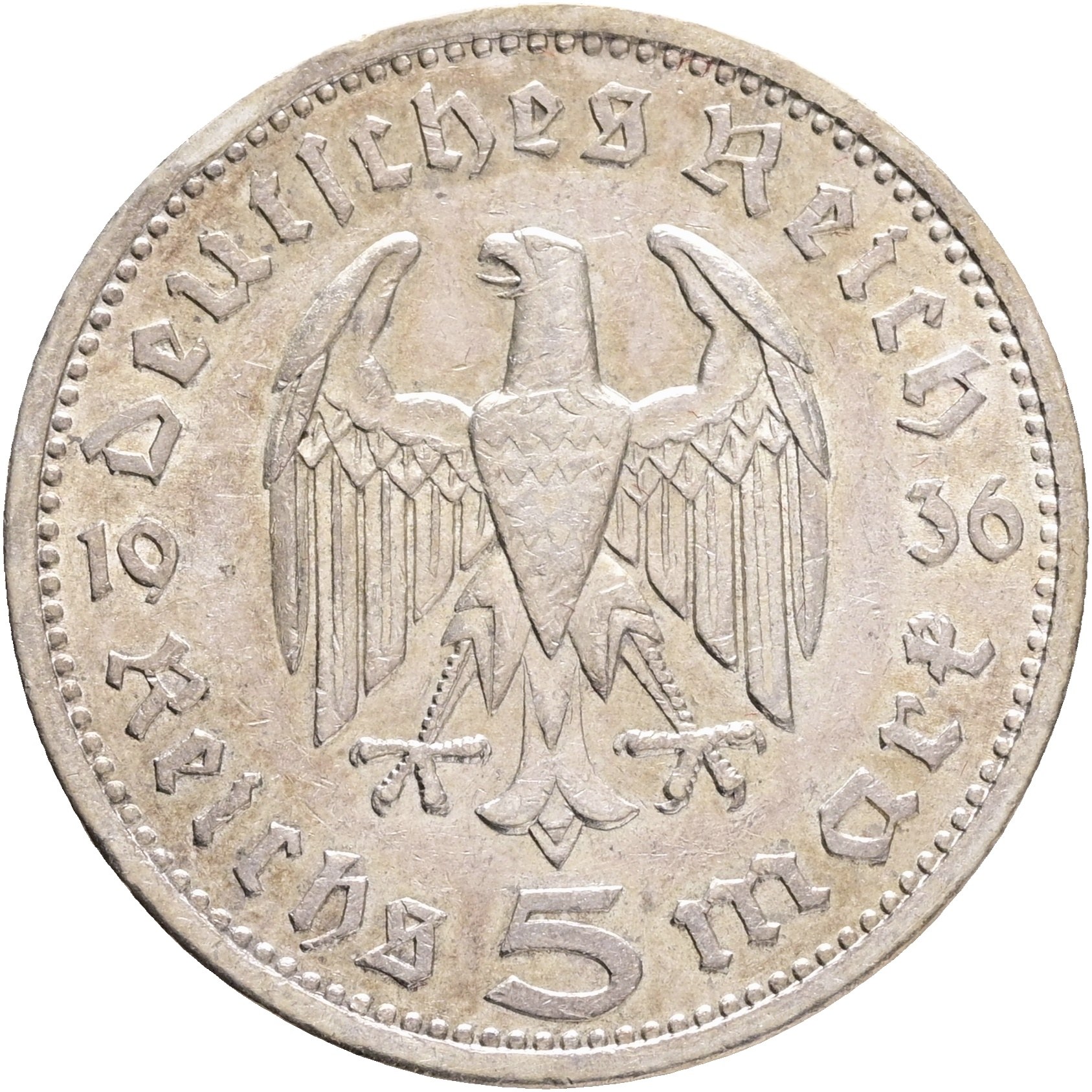 Third Reich 5 Mark 1936 A P.von Hindenburg