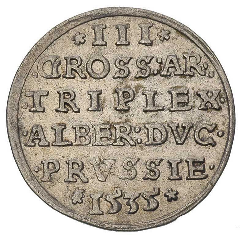 Albrecht 1525-1568, trojak 1535, Królewiec, na awersie PRVSS, Bahr. 1150, Neumann 42