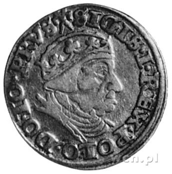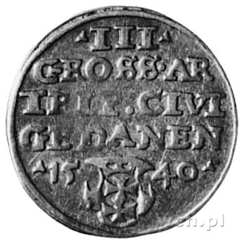trojak 1540, Gdańsk, Aw: Popiersie w czepcu i koronie o...