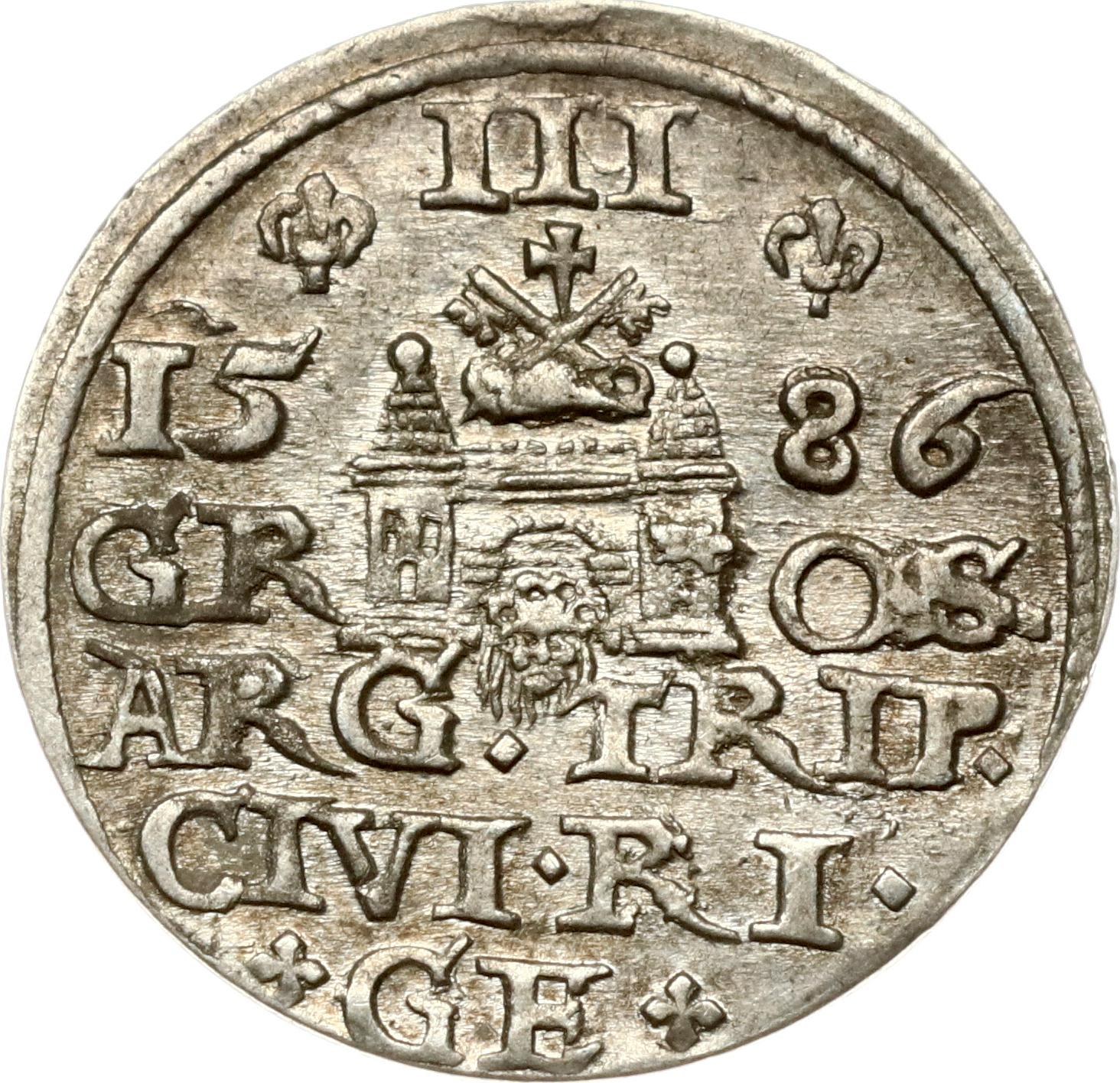Poland. Stefan Batory (1576–1586). Trojak 1586 Riga. Silver 2.47 g. Iger R.86.2.d (R).