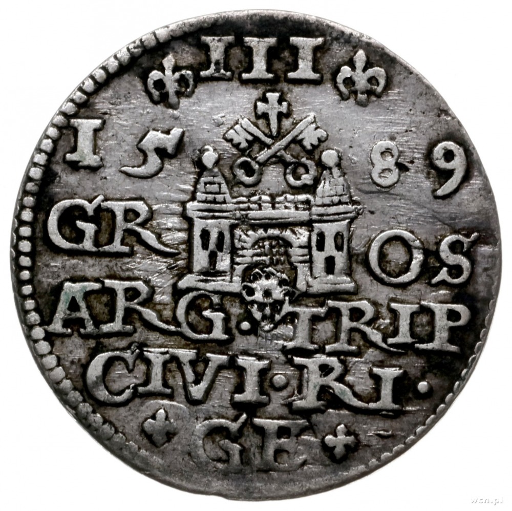 trojak 1589, Ryga; lilie u góry rewersu; Iger R.89.1.a ...