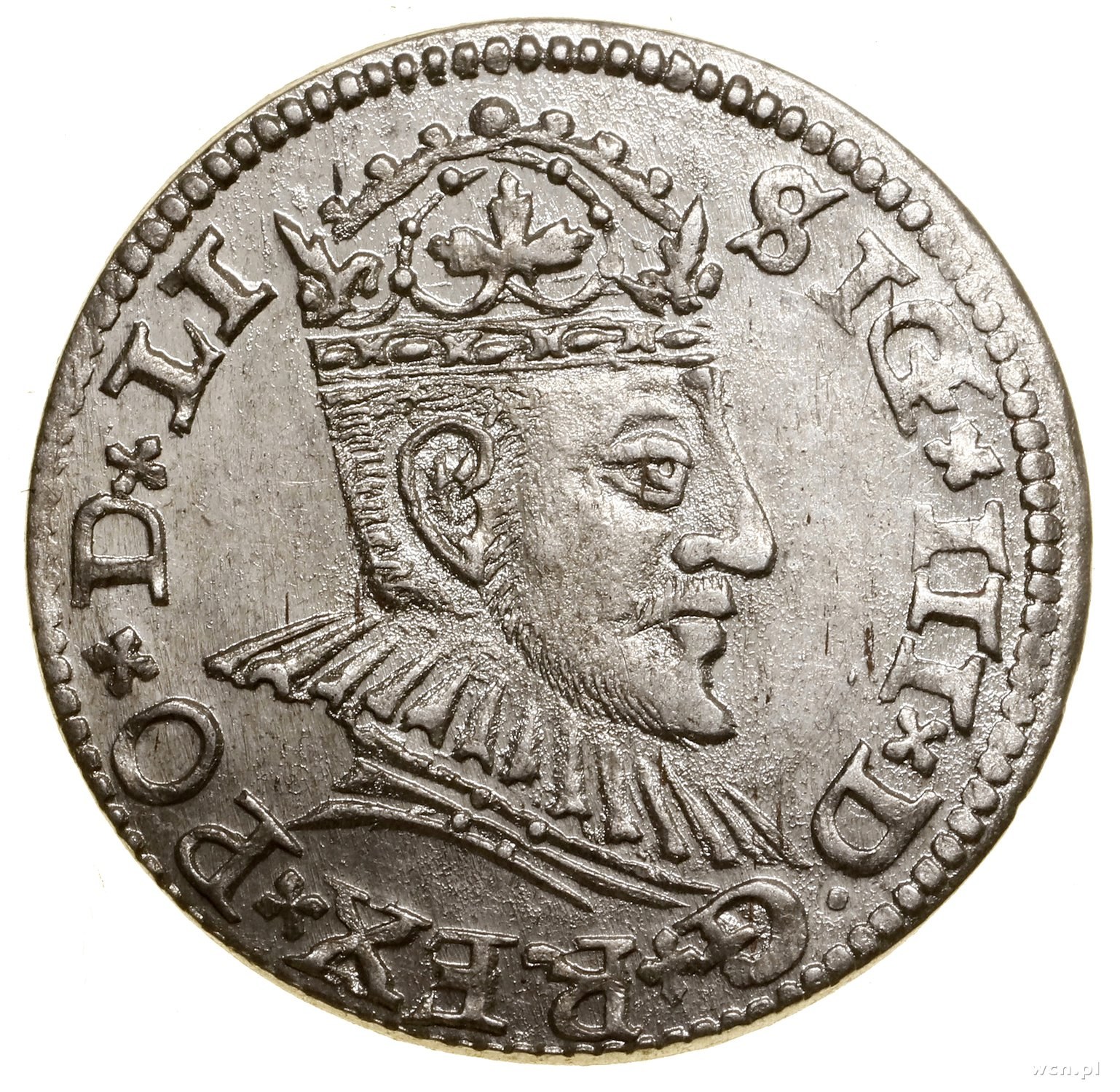 miasto Ryga, Trojak, 1590, Ryga; Iger R.90.1.d var (kropka w D.G); K.-G. 23, Kop. 8184 (R1), Kopicki (ZIIIW) 1412b (R2); pięknie zachowana moneta.
