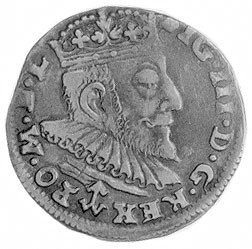 Zygmunt III Waza 1587-1632, trojak 1590, Wilno, Aw: Popiersie w koronie i napis, Rw: Herby i napis, Kop. I 2b-R-, odmiana z h. Chalecki pod popiersiem.