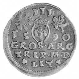 trojak 1590, Wilno, Aw: Popiersie w koronie i napis, Rw...