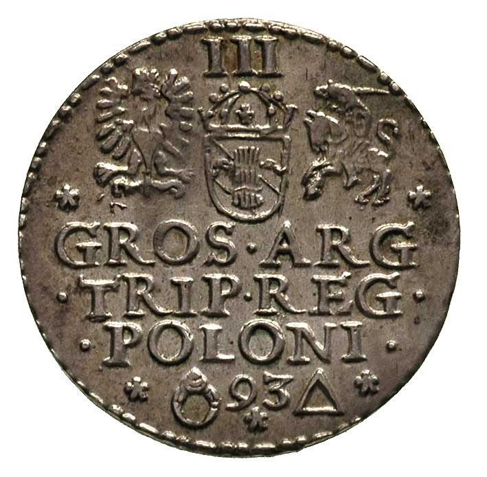 Zygmunt III Waza 1587-1632, trojak 1593, Malbork, bardzo ładny