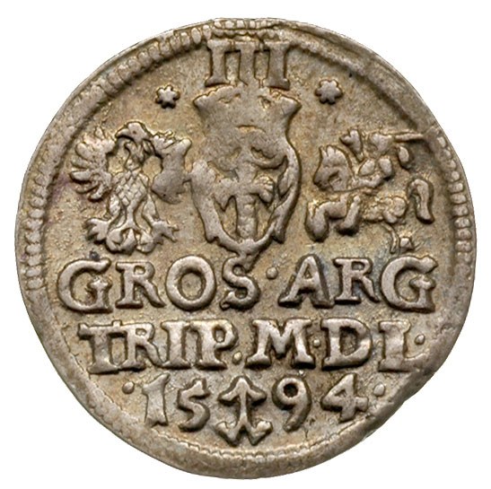 trojak 1594, Wilno, gwiazdki po bokach cyfry III, Iger ...