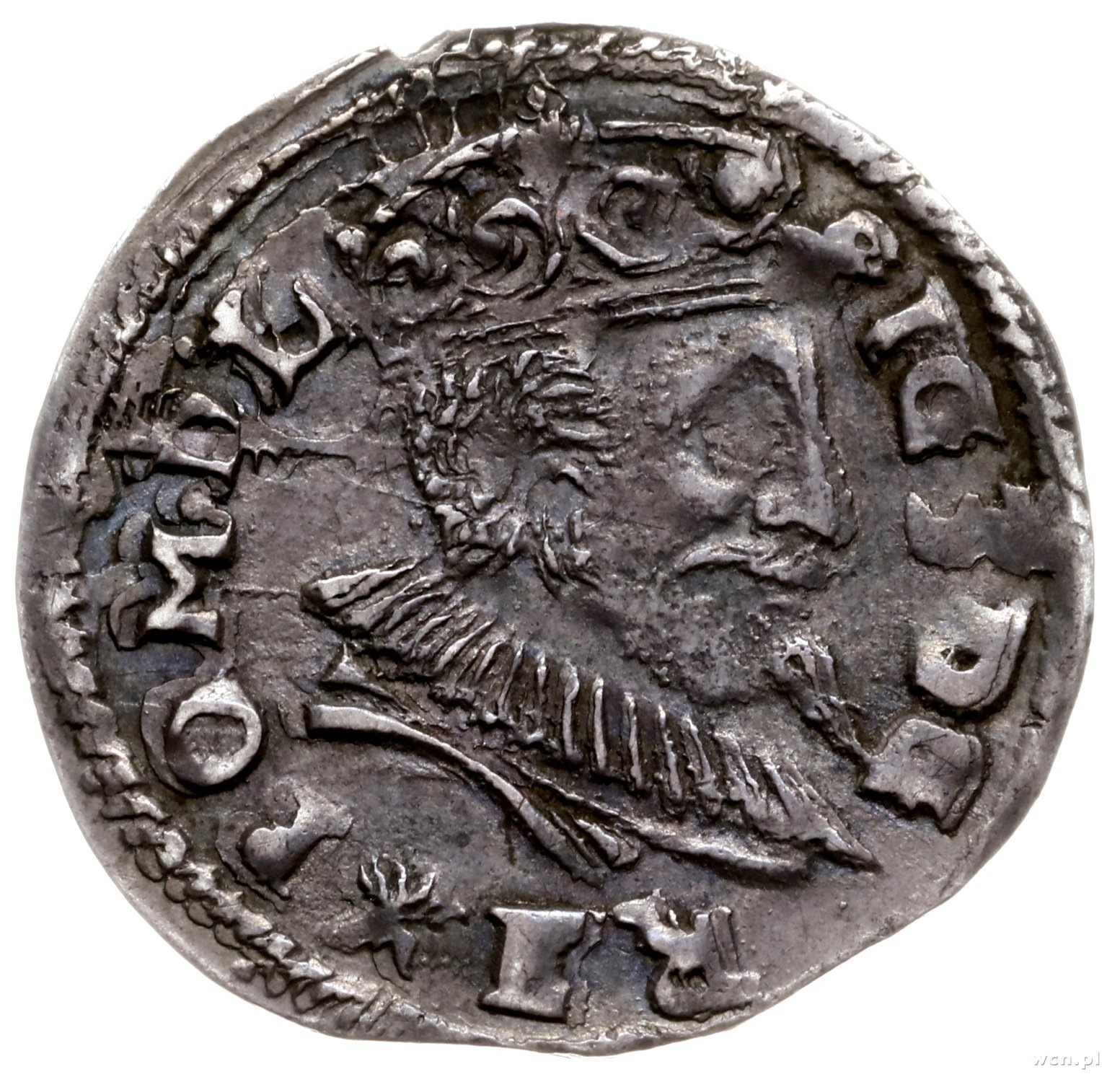 monety koronne, trojak 1597, Lublin; na awersie litera X zniekształcona, na rewersie herb Lewart bez obwódki, cyfra 7 dwukrotnie nabita; Iger L.97.5.c (R4); patyna, bardzo ładny i wyjątkowo rzadki