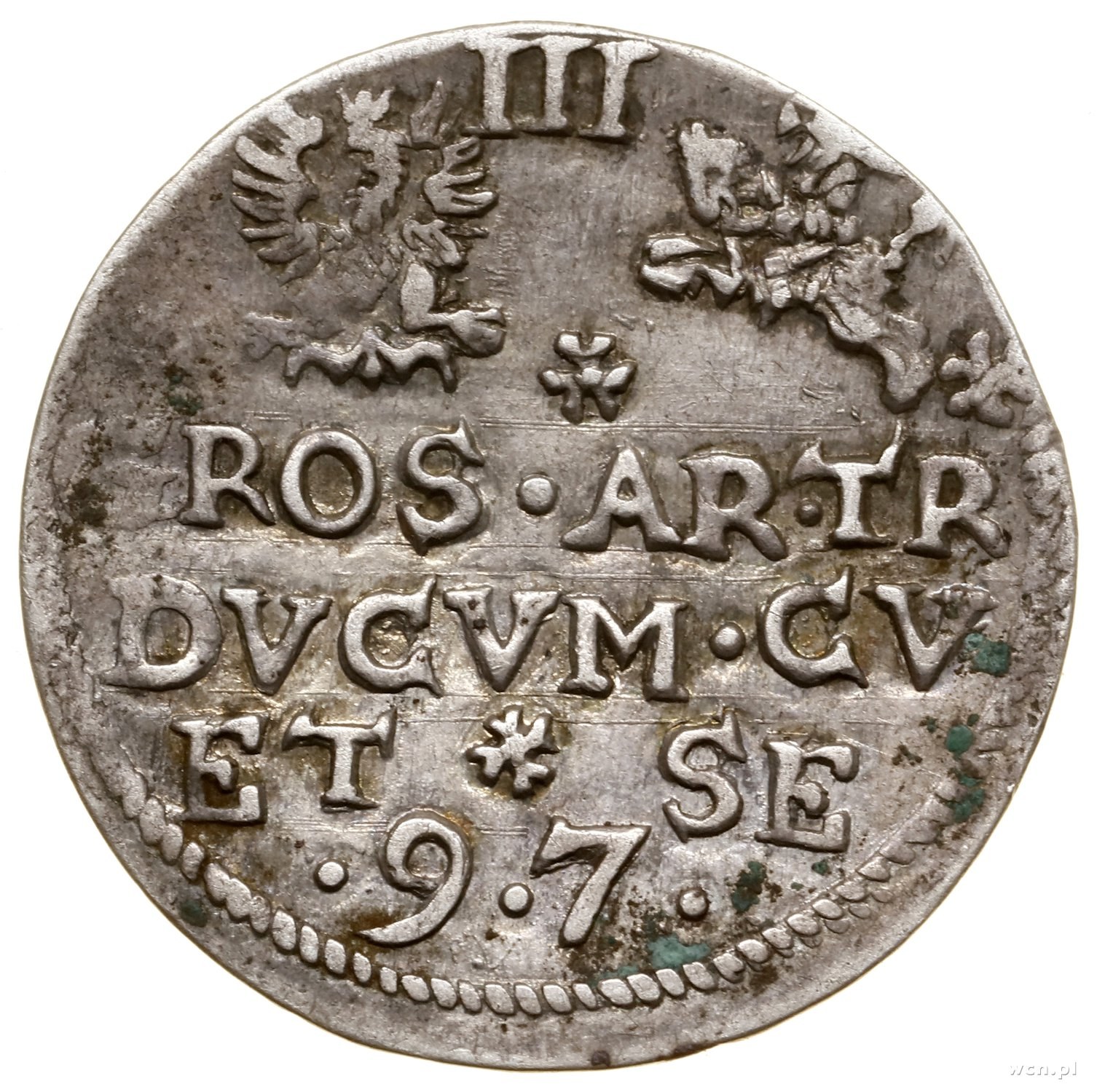 Trojak, 1597, Mitawa; na awersie interpunkcja w formie ...
