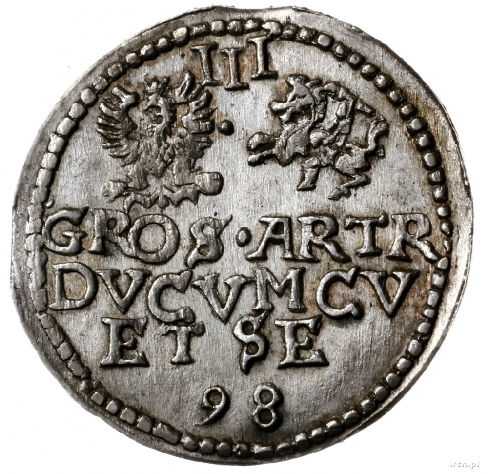 trojak 1598, Mitawa; skrócona data u dołu rewersu; Iger...