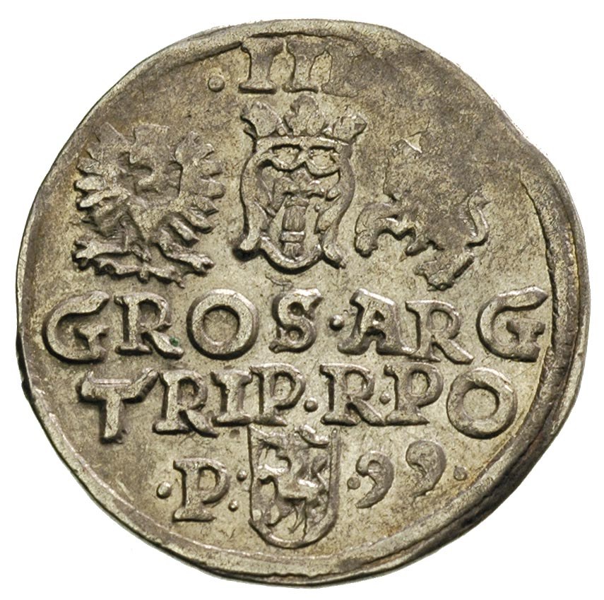 trojak 1599, Poznań, Iger P.99.1.c, moneta z końcówki b...