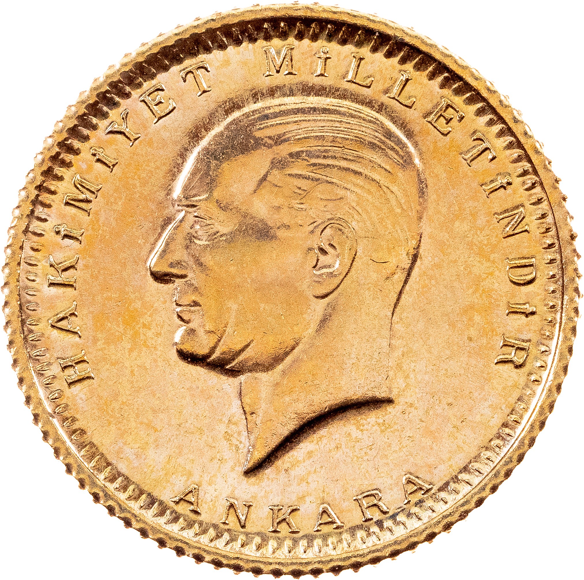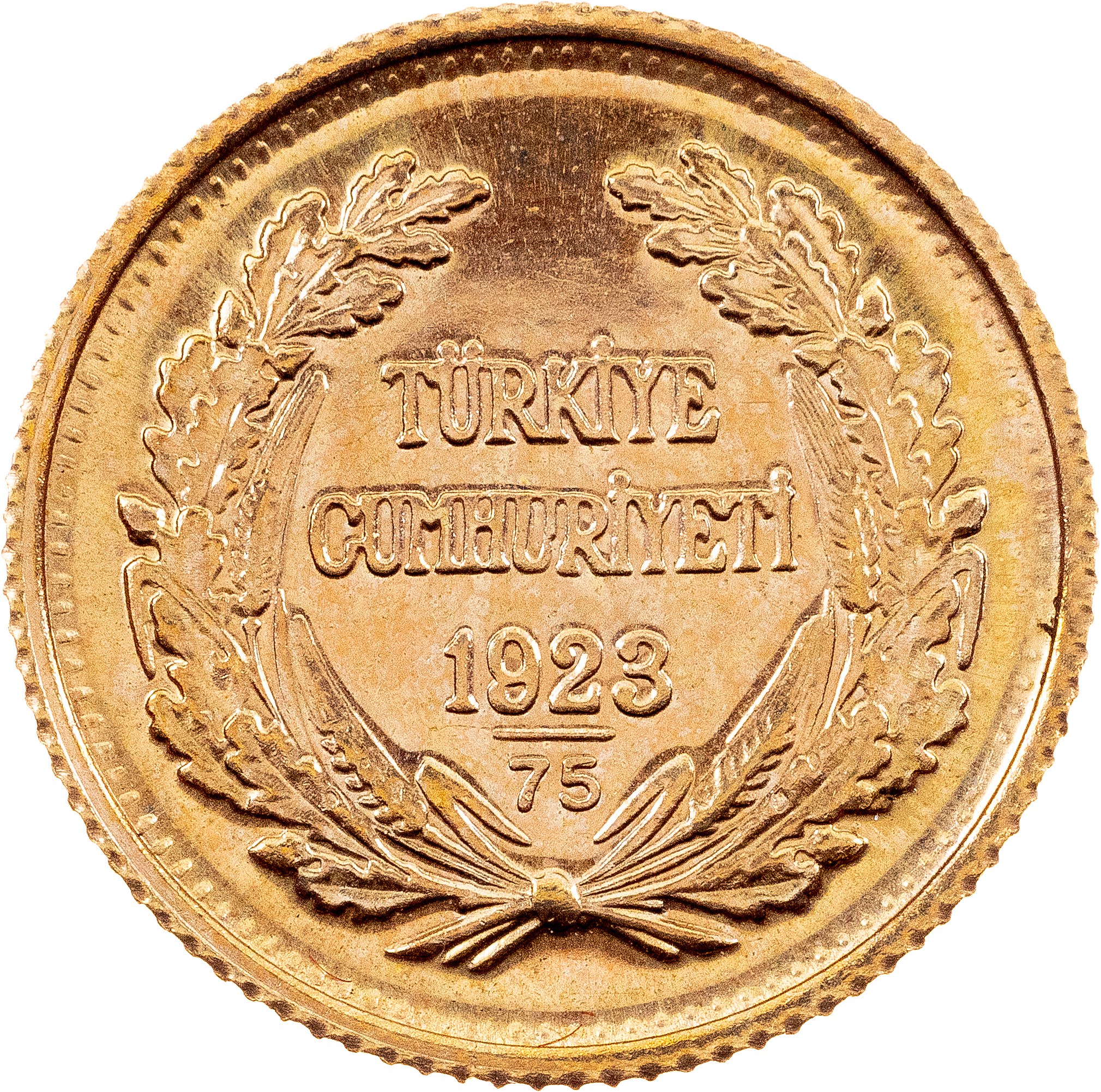 Description: Mustafa Kemal Atatürk; Gold Bullion Coinage; The Meskuk is the standard version of the turkish gold bullion coinage and is referred to as “store of value” coin. The year date is based on the number of years since 1923, when Turkey was established as a Republic. The year date changes on 29 October, the date in 1923 when Turkey became a Republic, and the coins are struck with this date until 28 October in the following year.