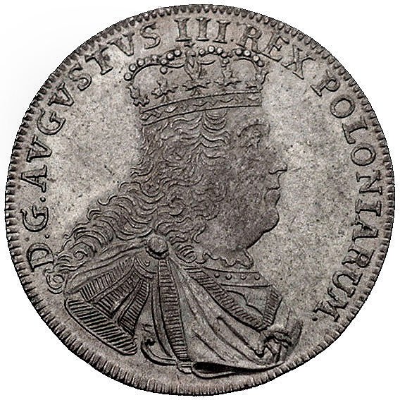August III 1733-1763, tymf 1753, Lipsk, popiersie z literą S, Kam. 788 (R4), bardzo rzadka i ładna moneta