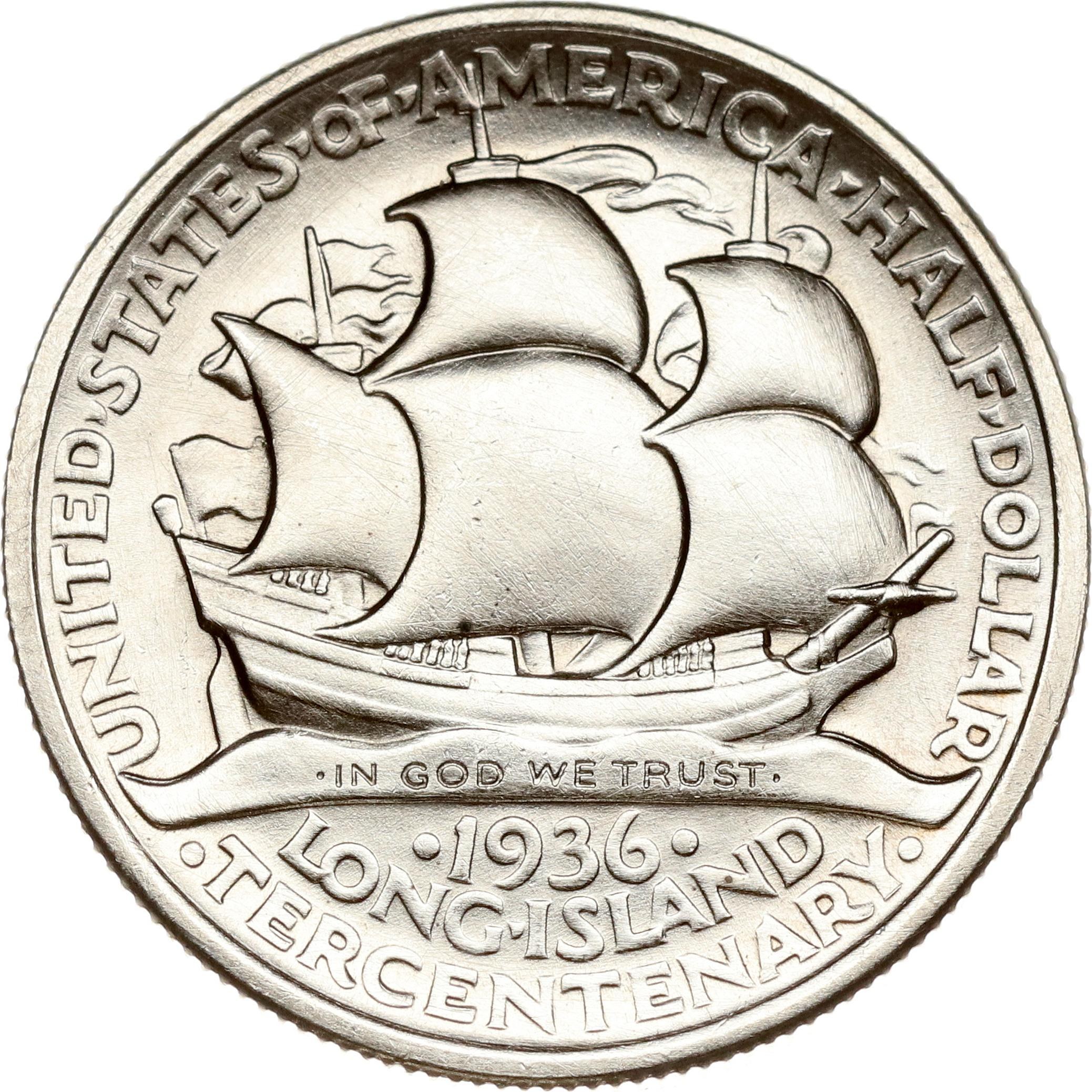 USA. 1/2 Dollar 1936, Long Island. 300th Anniversary of Dutch settlement on Long Island. Silver 12.52 g. KM 182. Small scratches.