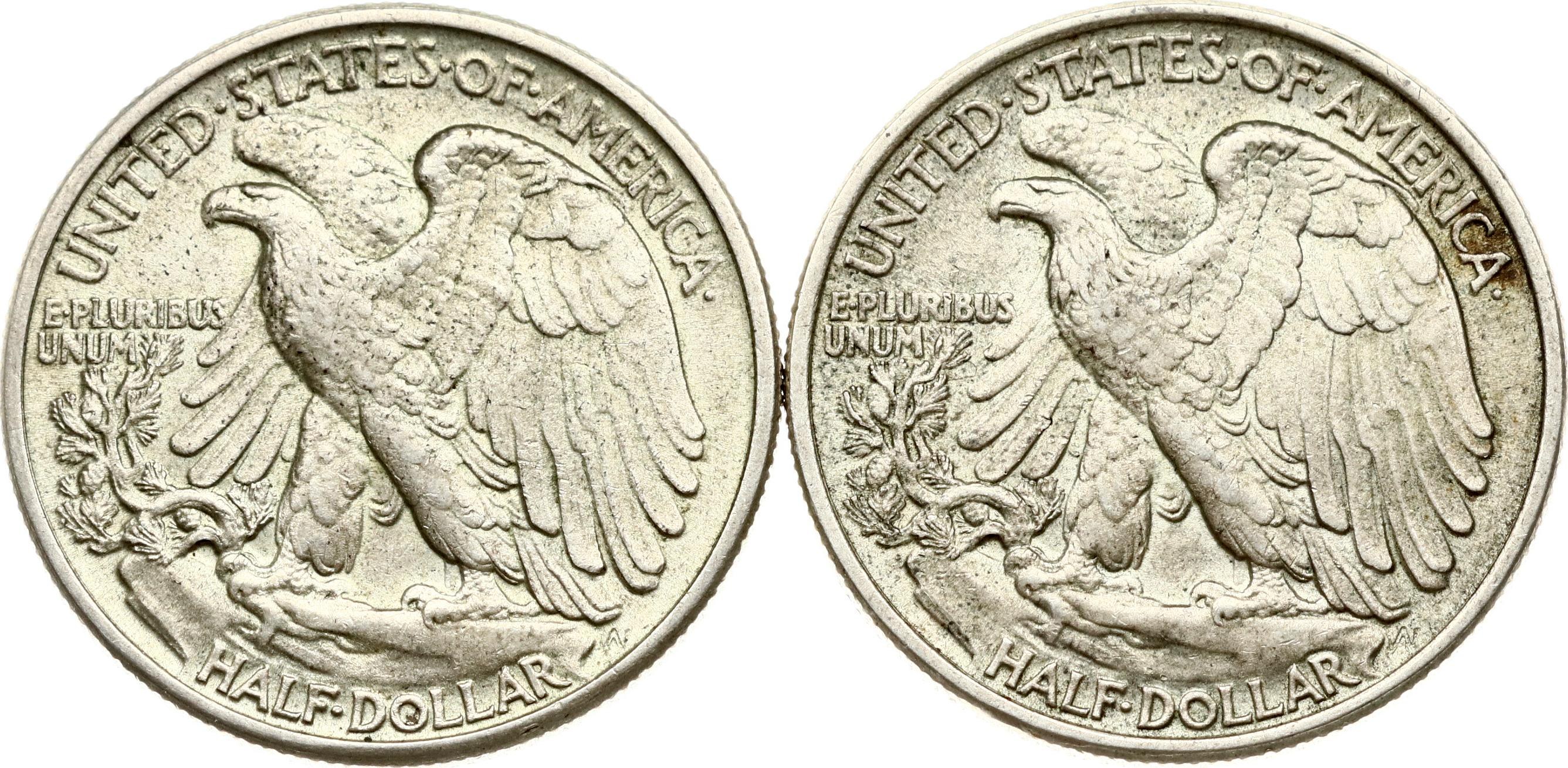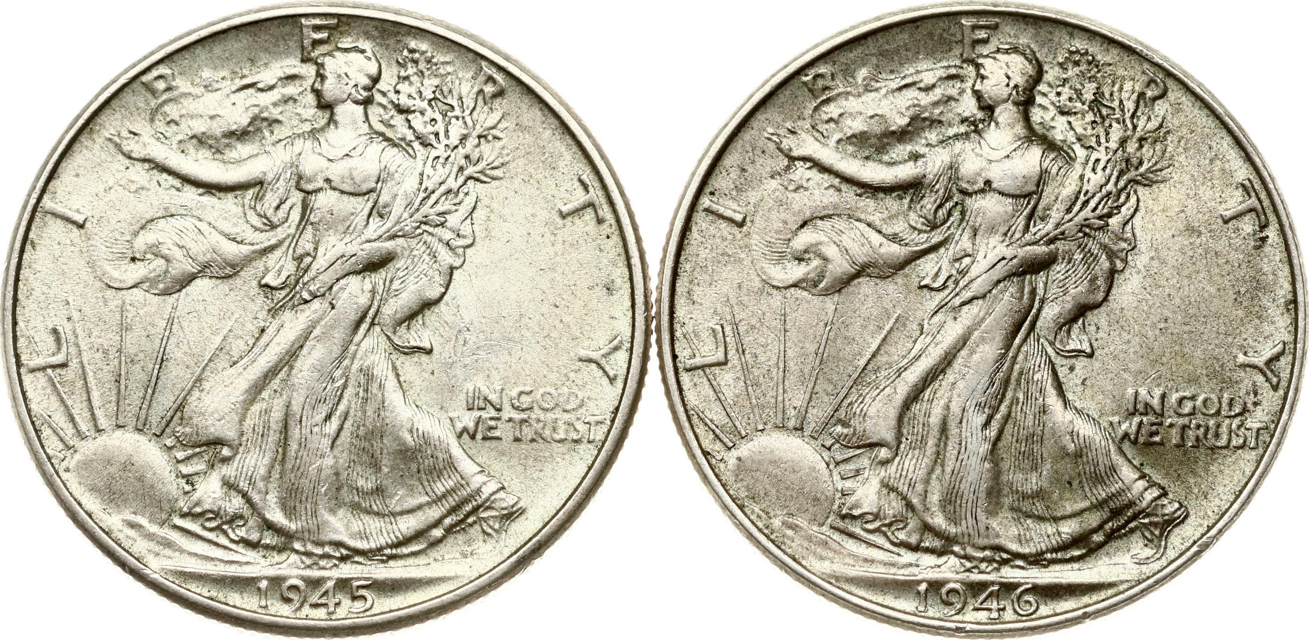 USA. 1/2 Dollar 1945 & 1946 'Walking Liberty Half Dollar'. Silver total weight 24.88 g. KM-142. Lot of 2 coins