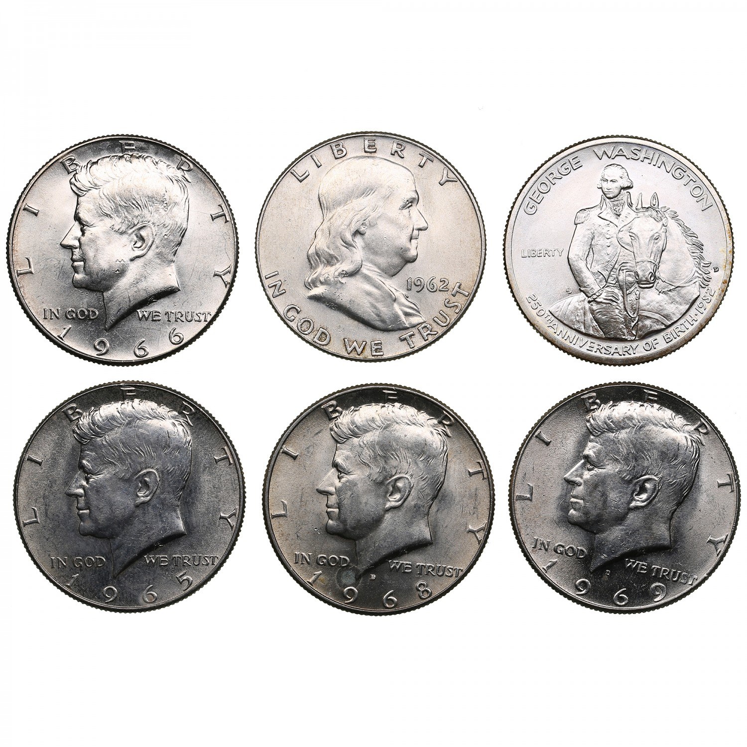 USA 1/2 Dollar 1962, 1965, 1966, 1968D, 1969D, 1982 (6)