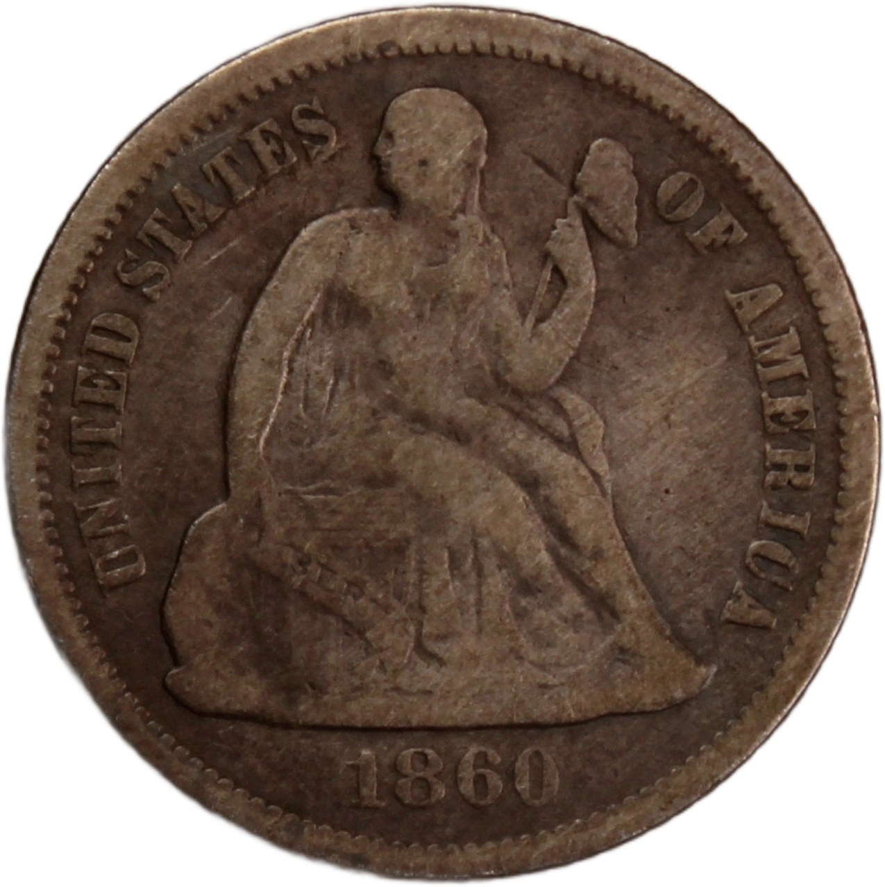 United States 10 Cents 1860 O New Orlean Mint "Seated Liberty Dime" Mintage: 40,000 pcs Silver KM#92