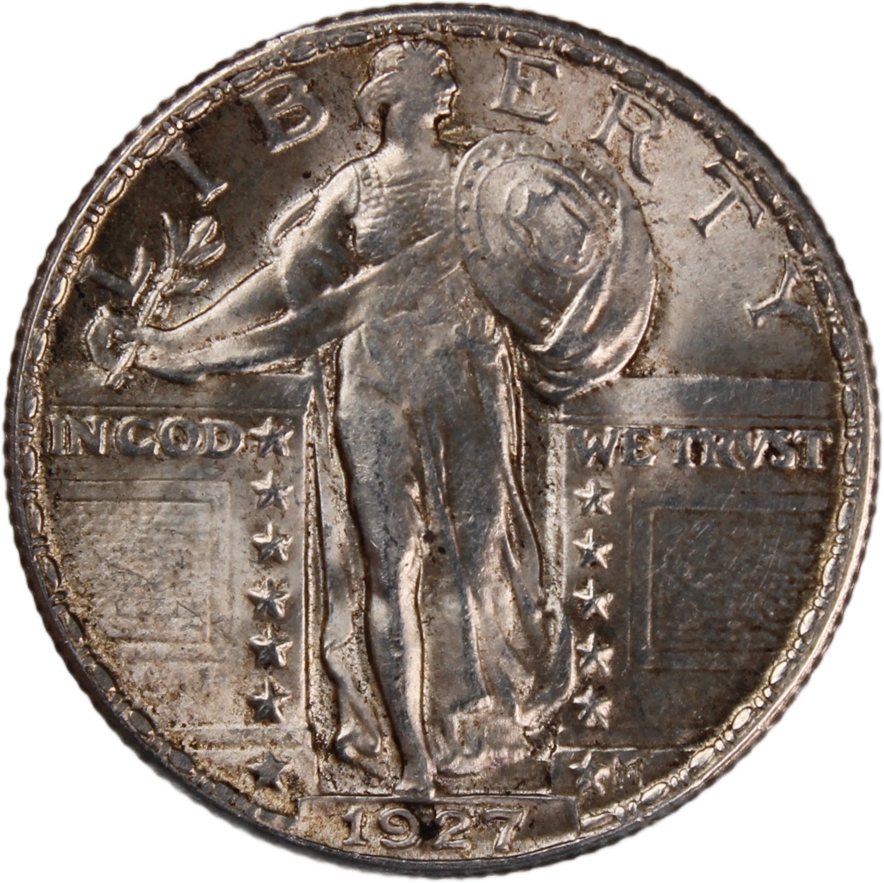 United States 25 Cents (Quarter) 1927 Philadelphia Mint ("Standing Liberty Quarter" Stars Below Eagle) Federal Republic Silver KM#145