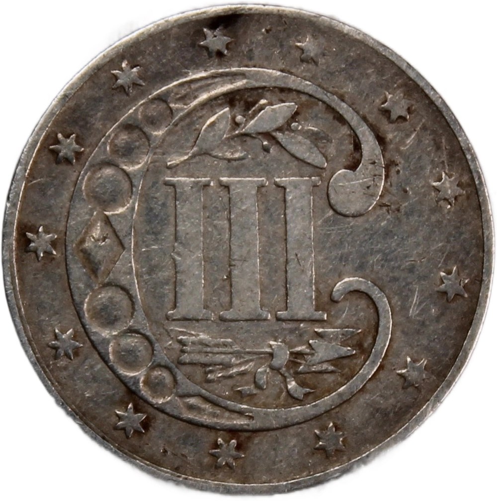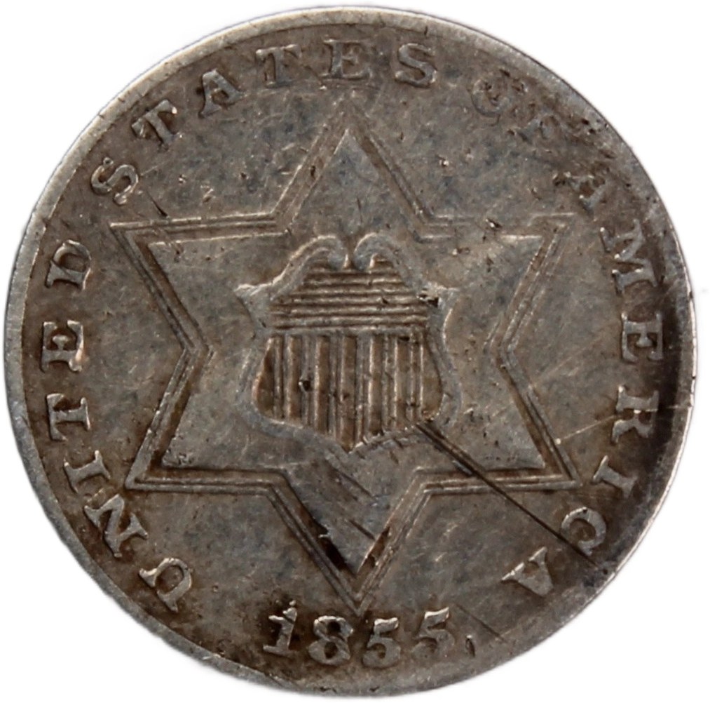 United States 3 Cents 1855 type 2 - two lines bordering star Philadelphia Mint Mintage: 139,000 pcs Silver KM#80