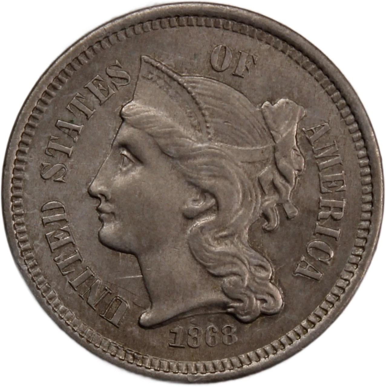 United States 3 Cents 1868 "Three Cent Nickel" Philadelphia Mint Federal Republic Copper-nickel KM#95
