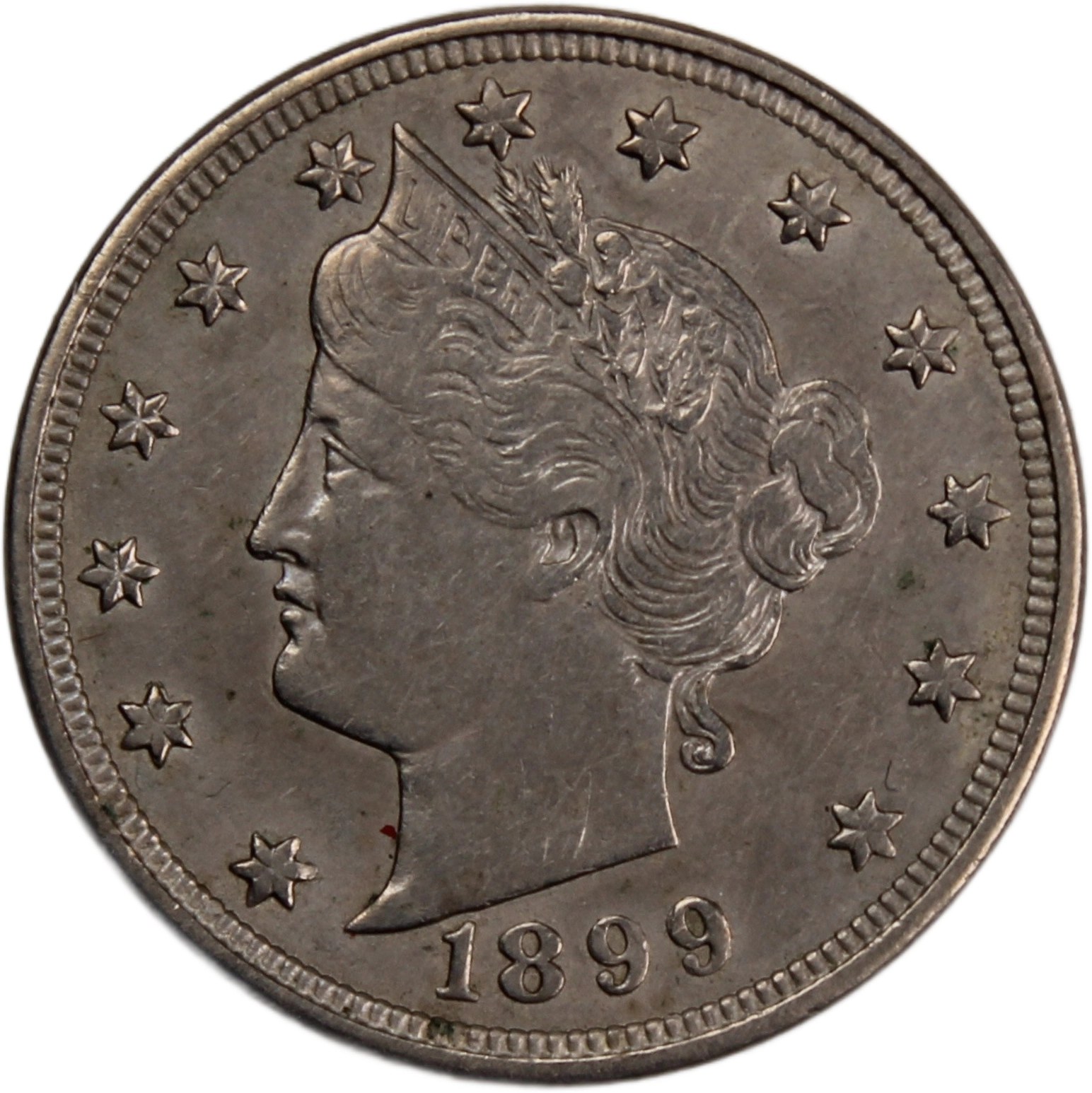 United States 5 Cents 1899 Philadelphia Mint "Liberty Nickel" with "CENTS" Copper-nickel KM#112