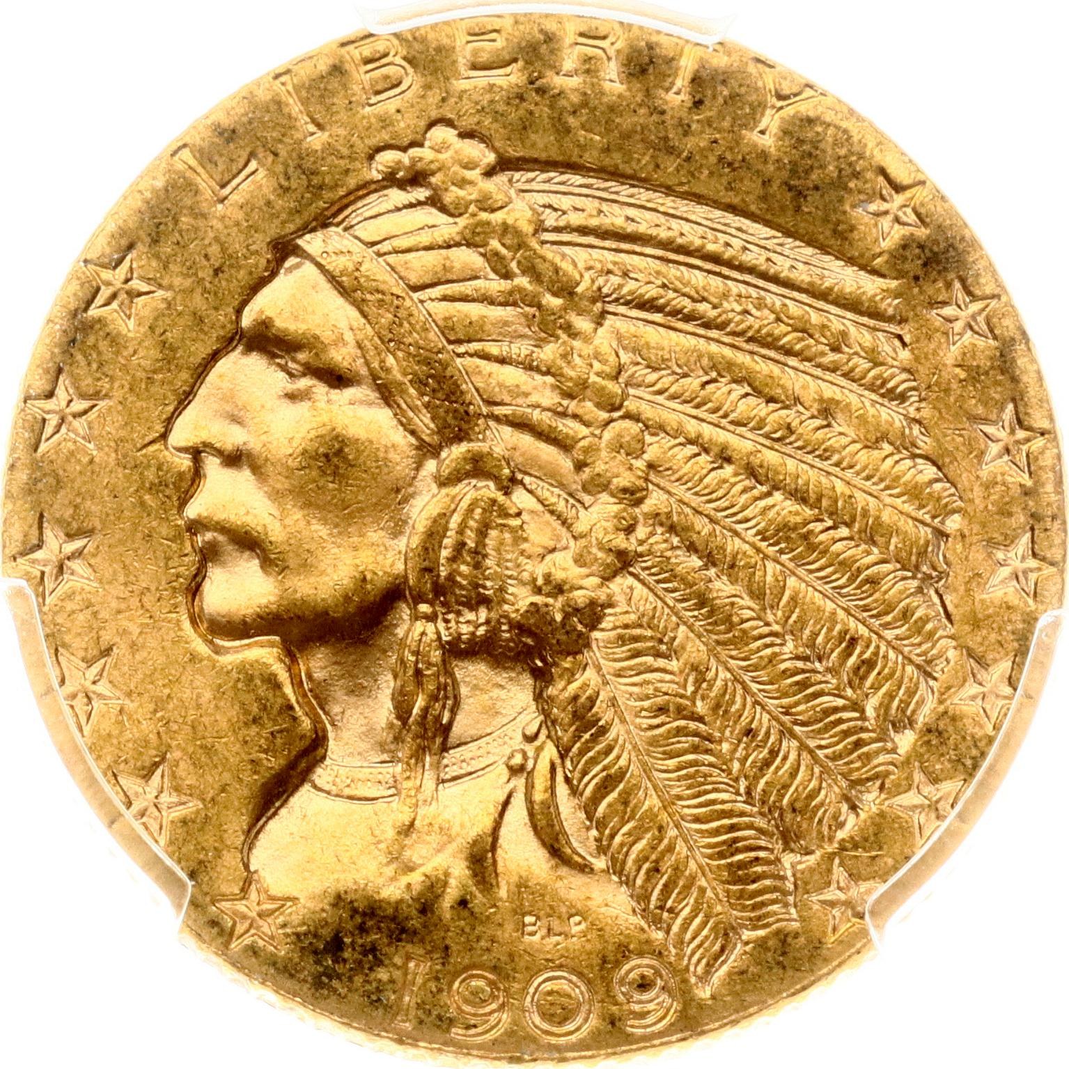 USA. 5 Dollars 1909 D, Denver. Indian Head. Gold. KM 129. PCGS MS 62.