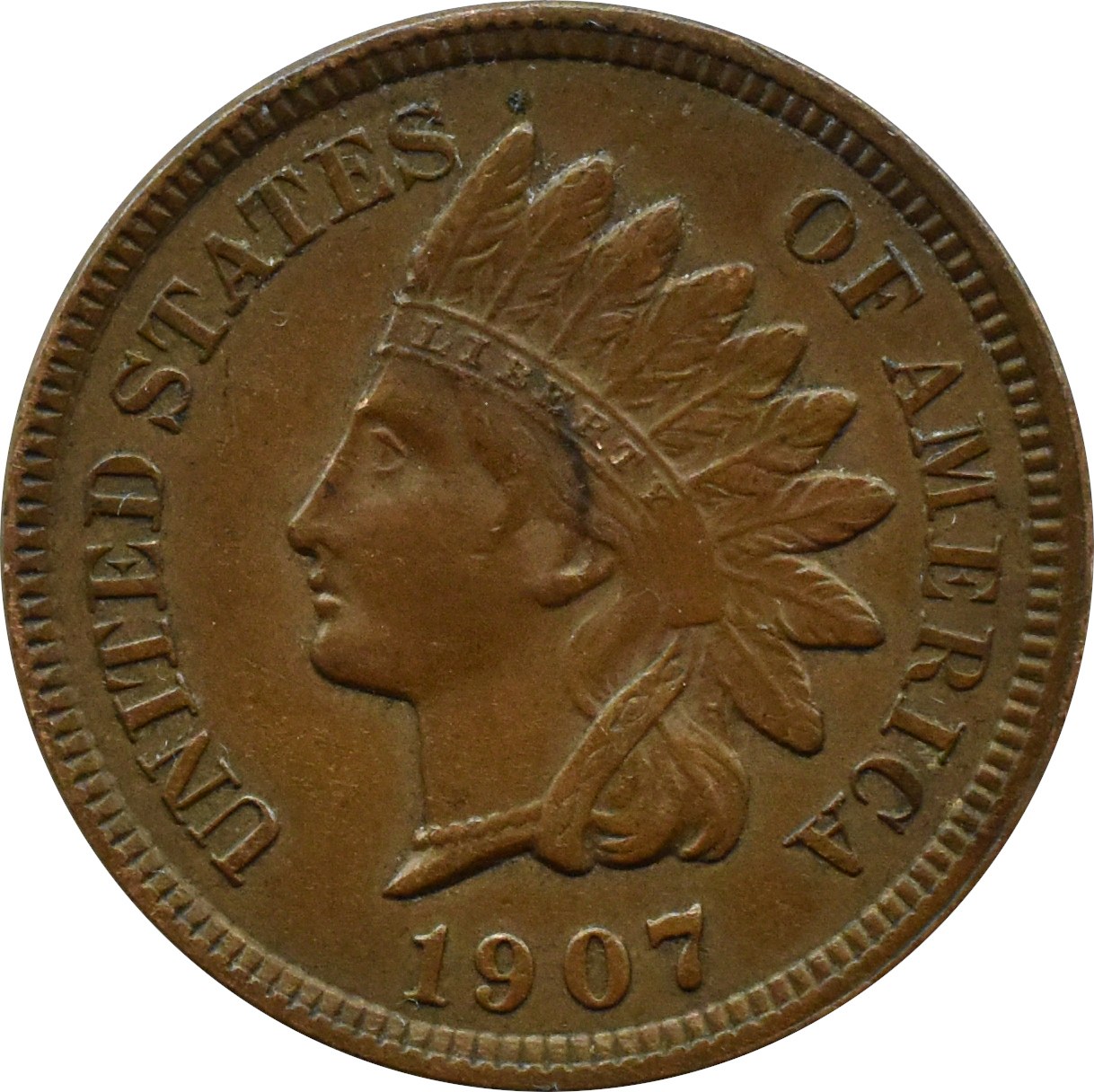 USA, Głowa Indanina, cent 1907, mennica Filadelfia