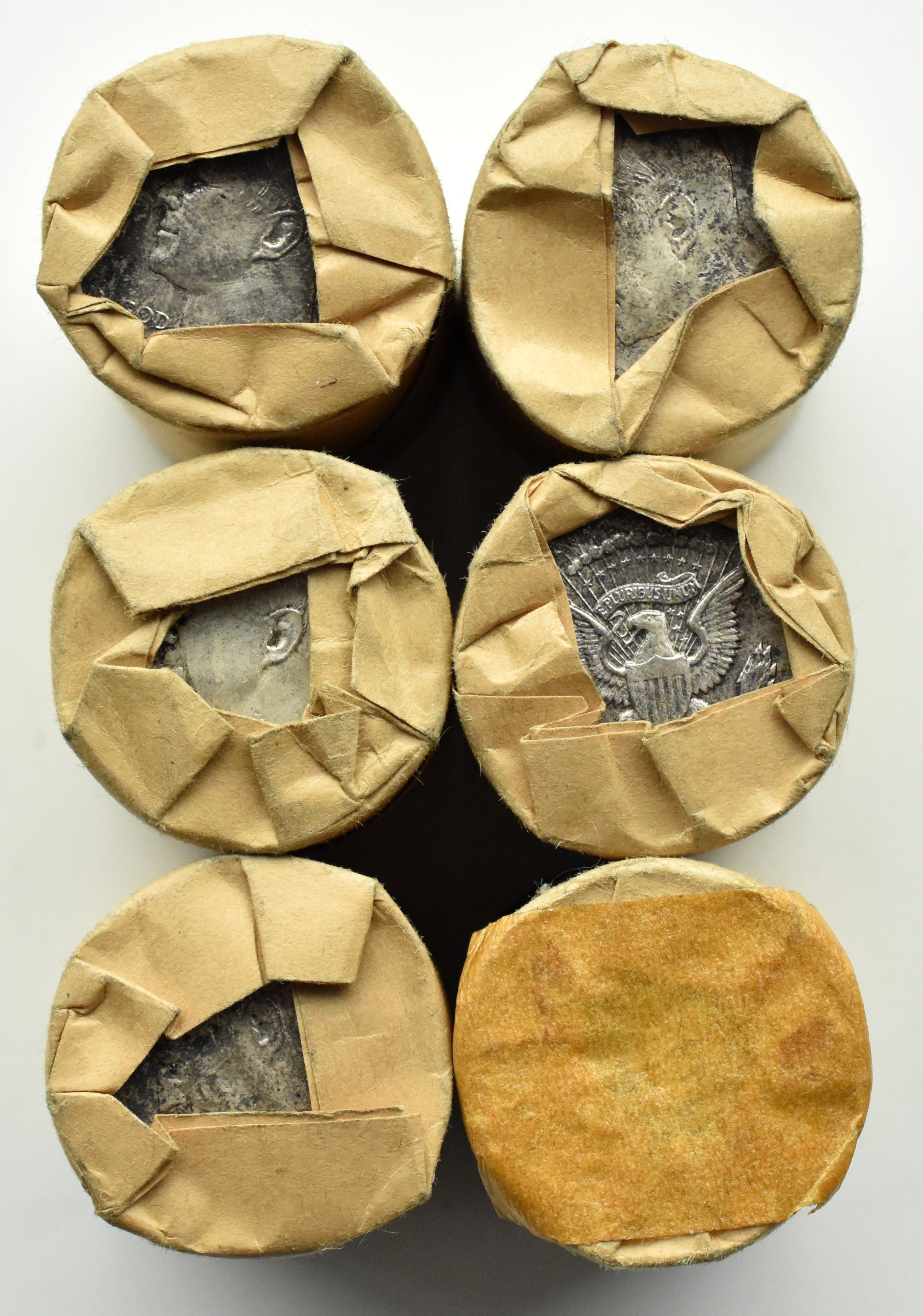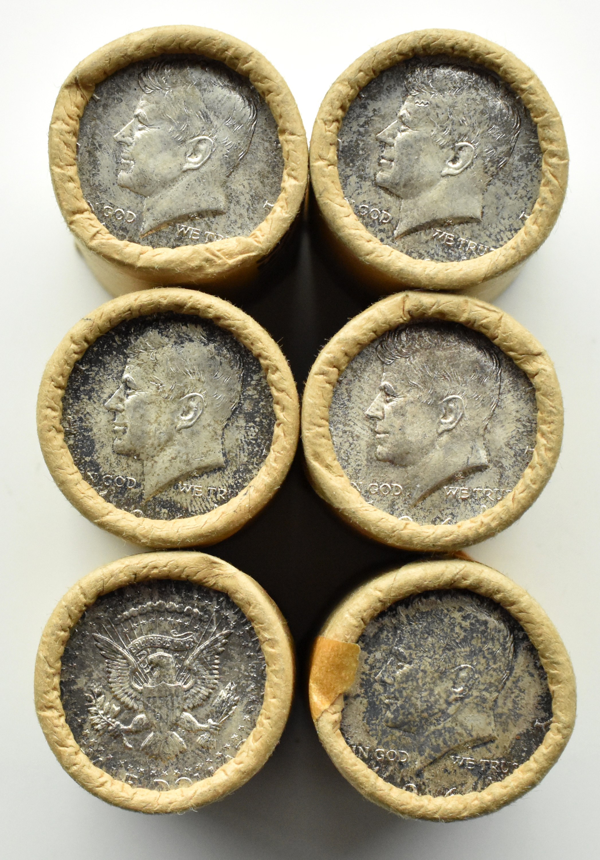 USA, John F. Kennedy, sześć rolek bankowych 1/2 dolara 1964, mennica Filadelfia, RZADKOŚĆ