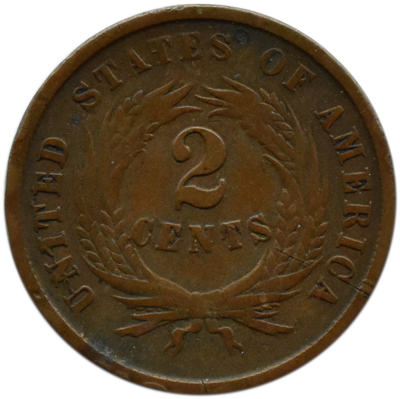 pierwszy rocznik wybijania dwu-centówki, rzadszy typ monety amerykańskiej wybijana tylko przez 10 lat