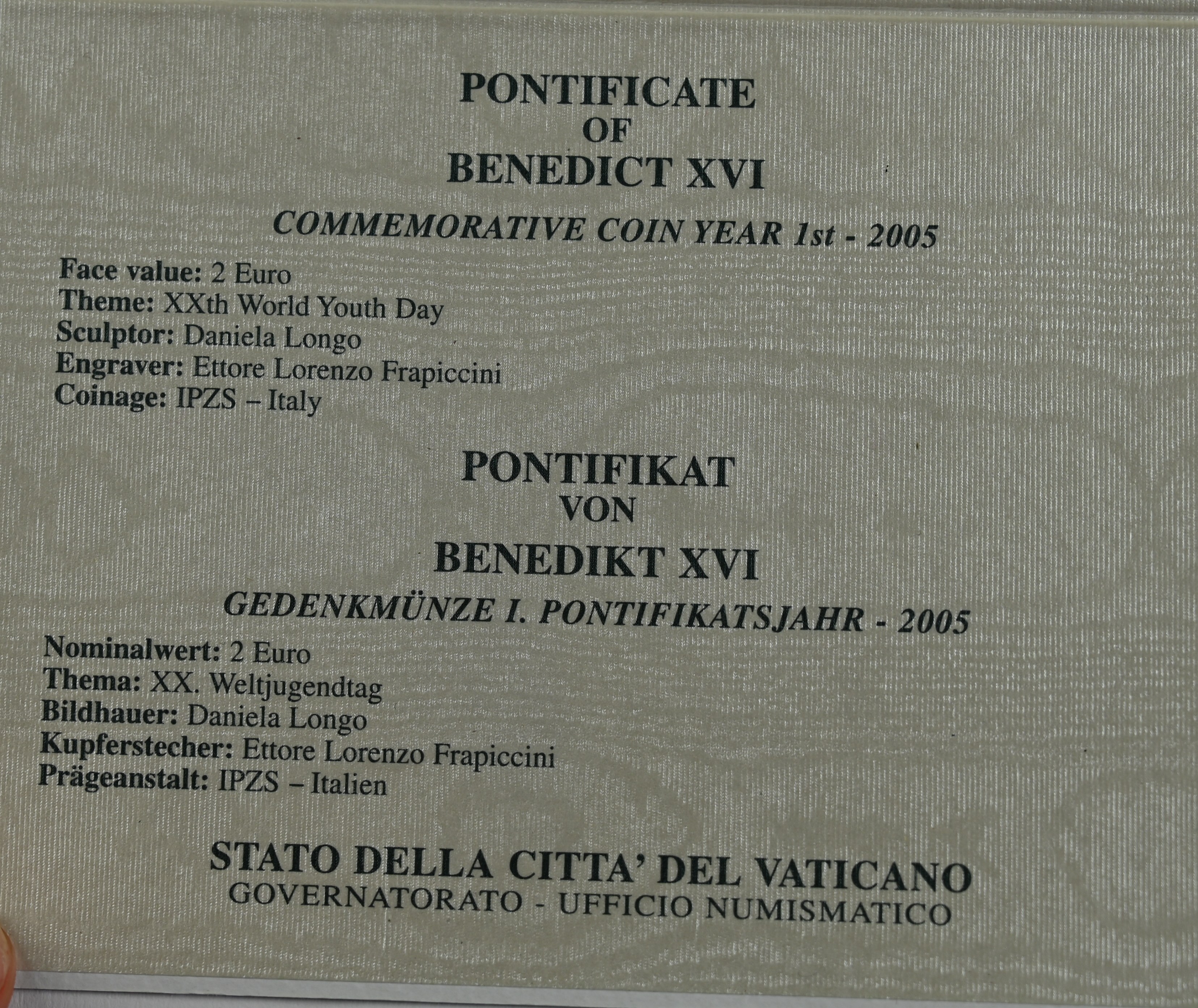 Vatikán, Pamětní mince, 2 Euro 2005, Pontifikát Benedikta XVI.
