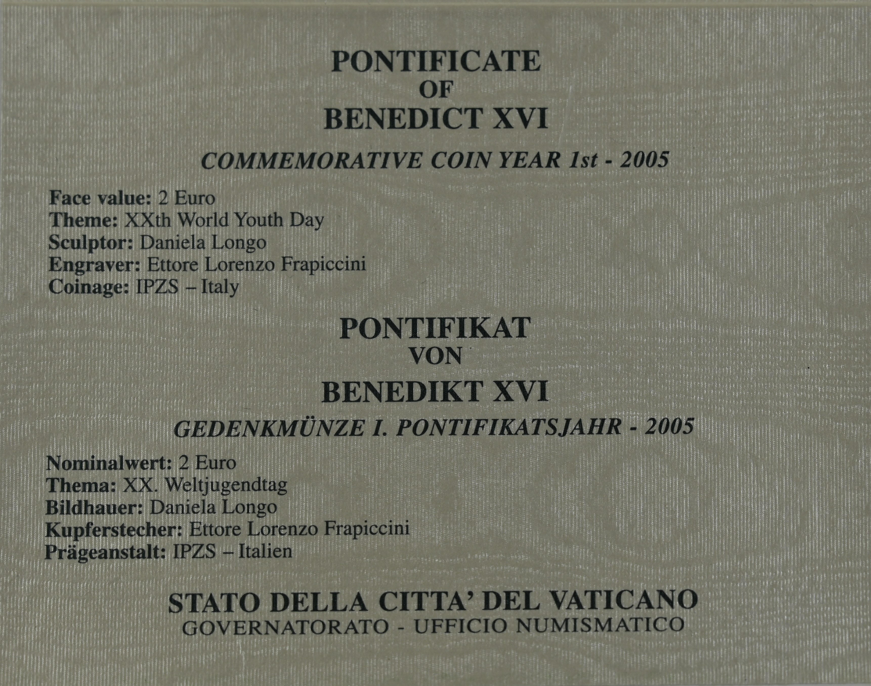 Vatikán, Pamětní mince, 2 Euro 2005, Pontifikát Benedikta XVI.