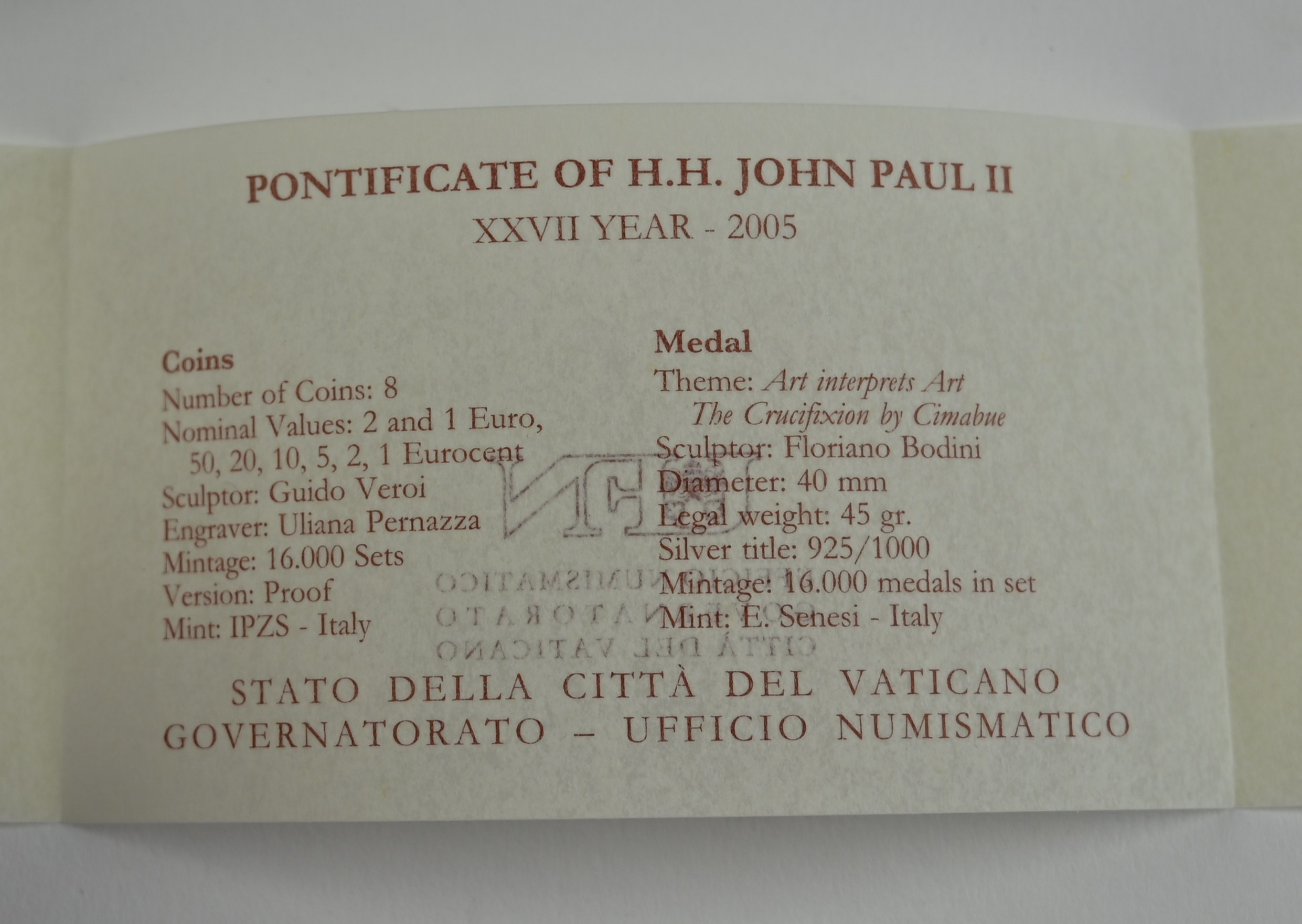 Vatikán, Sada pamětních mincí, 2005, Pontifikát Giovanni Paolo II., H.H. John Paul II., Jeho svatost Jan Pavel II.