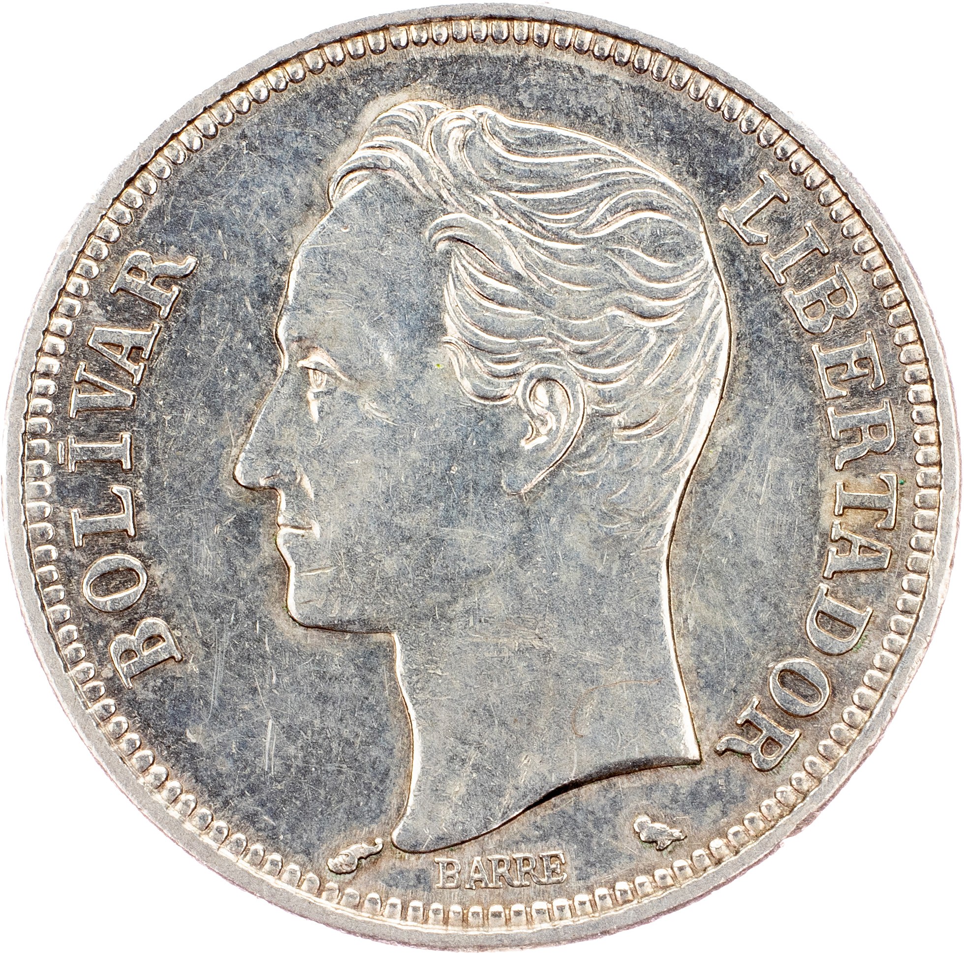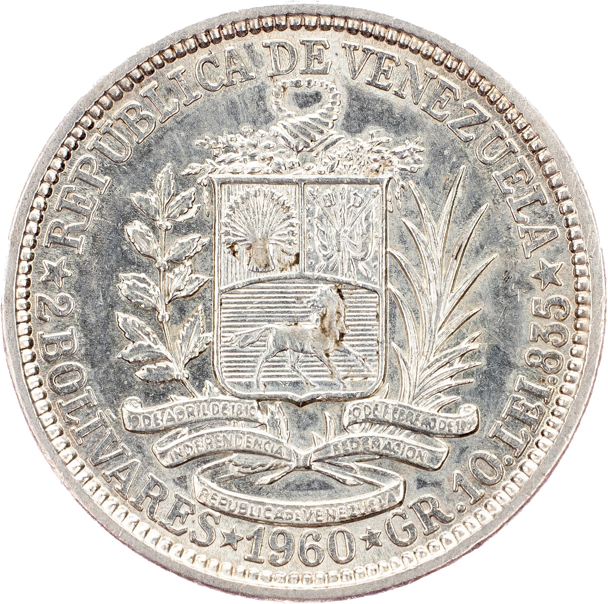 Venezuela, Fourth Republic, 2 Bolívares 1960, Paris, 10 g, Ag (835/1000), Y# A37, cleaned; EF