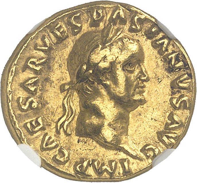 Vespasien (69-79). Aureus 69-71, Rome. NGC Ch VF 5/5 3/5 light marks (6645988-036).