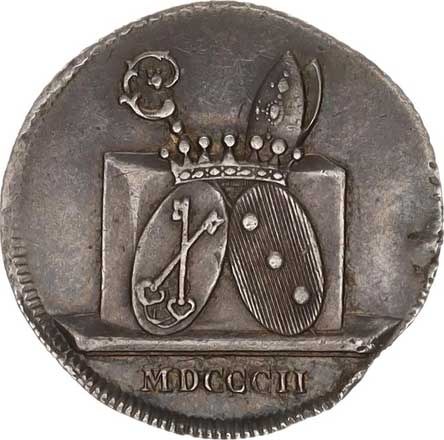 Prokop Benedikt Henniger von Eberg (1801-1809) - Instalační žeton 1802, 11-řádkový nápis / Dva znaky s berlou a mitrou v ex. letopo čet Ag 23 mm 2,218g Don.4698; Přibil 692 , vada stř. hr.