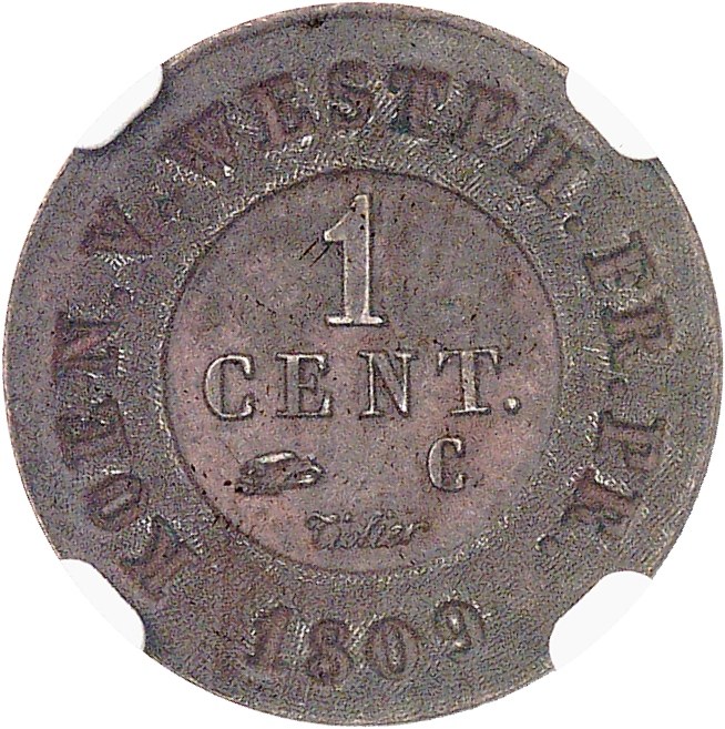 Westphalie, Jérôme Napoléon (1807-1813). 1 centime 1809, C, Cassel. NGC UNC DETAILS ENVIRONMENTAL DAMAGE (6635720-001).