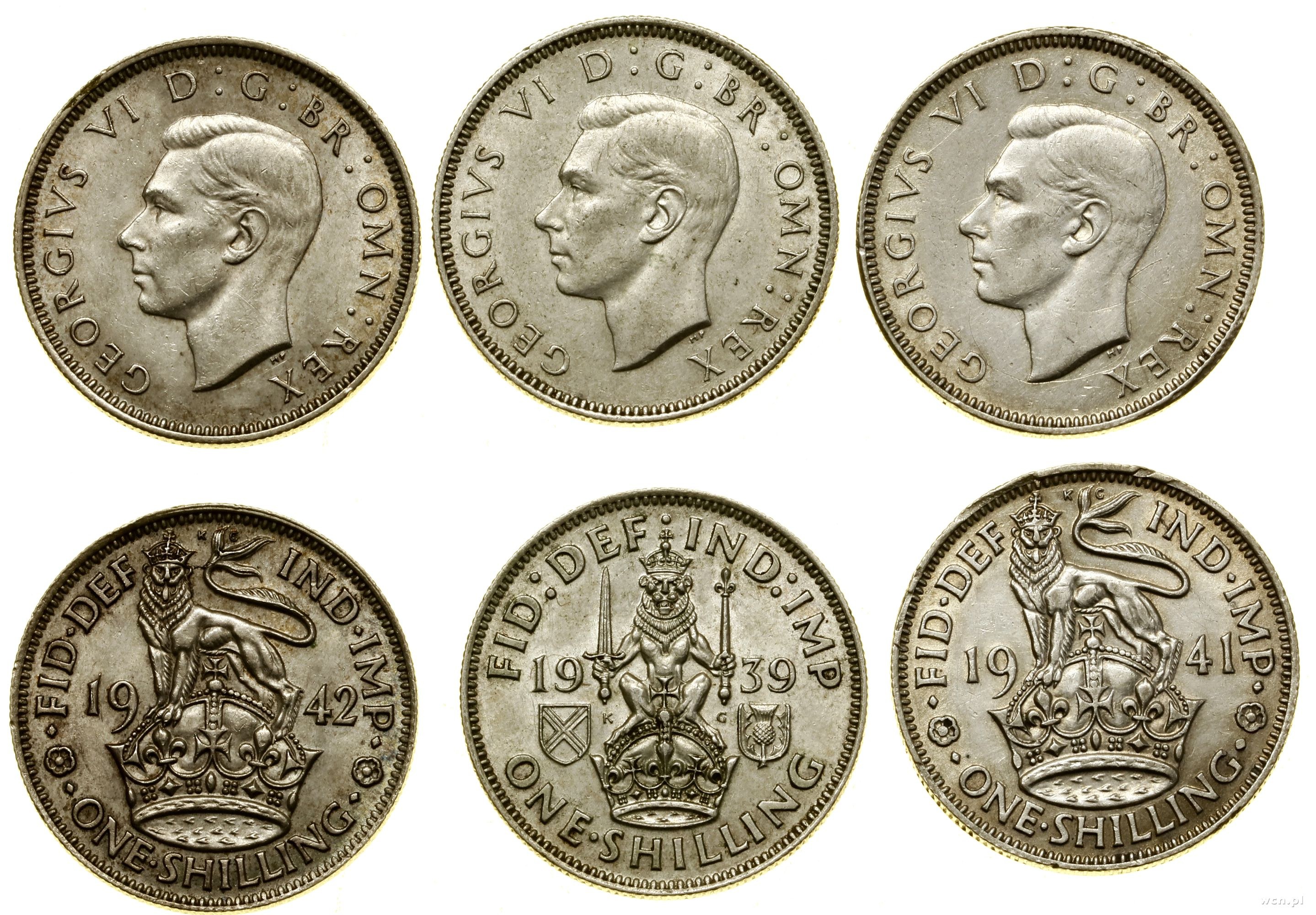 Wielka Brytania, lot 3 x 1 szyling, 1939, 1941, 1942, Londyn