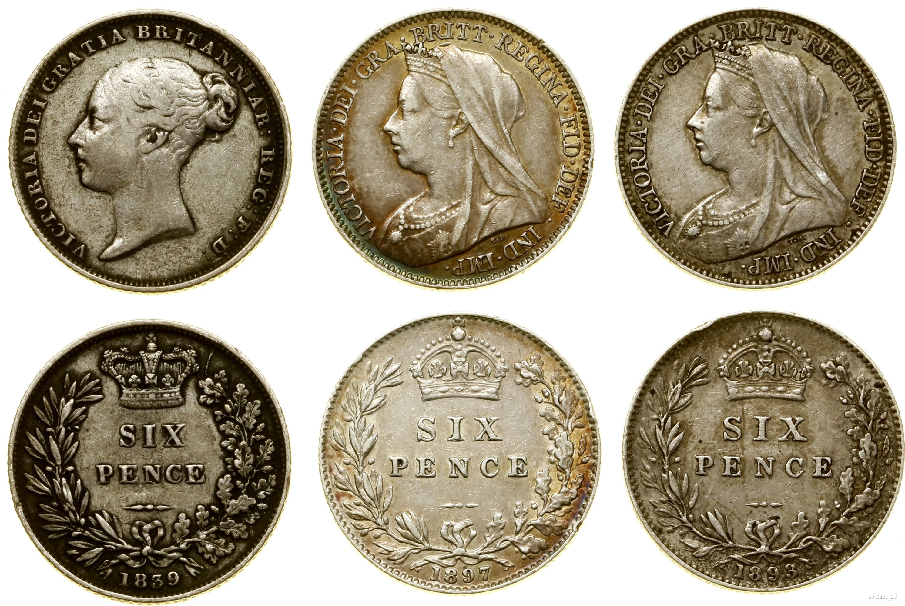 Wielka Brytania, lot 3 x 6 pensów, 1839, 1893, 1897, Londyn