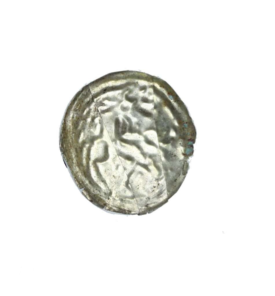 AR 17 brakteat Mieszka III, księcia wielkopolskiego (1138-1202) -książę na koniu; stan II z połyskiem, ale w 3 częściach podklejonych delikatnie bibułką (z możliwością usunięcia), dalej atrakcyjny; Kop.69 R4