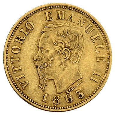 Wiktor Emanuel II 1861-1878, 10 lirów 1863, Turyn, Fr. ...