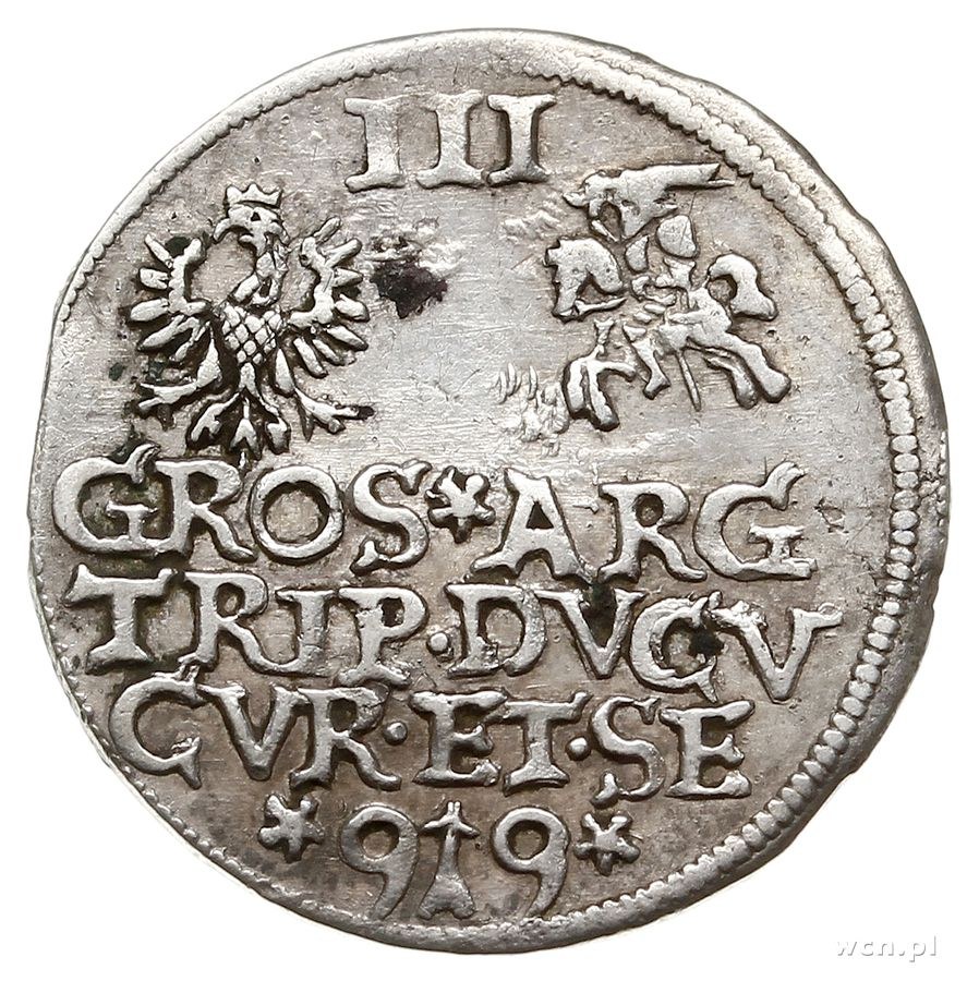 KSIĘSTWO KURLANDII, Wilhelm Kettler 1587-1616, trojak 1599, Mitawa, KuW.99.4.a (R3), Gerbaszewski 2.17.11.5, rzadki, patyna