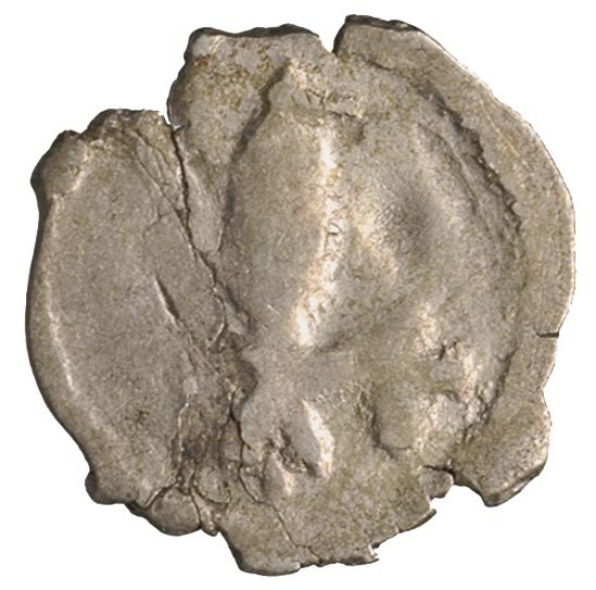 LITWA, Witold 1392-1430, pieniądz litewski (denar) wybity po 1401, Aw: Grot włóczni z krzyżykiem, Rw: Kolumny Gedymina, srebro 0.34 g, lekko pęknięty krążek